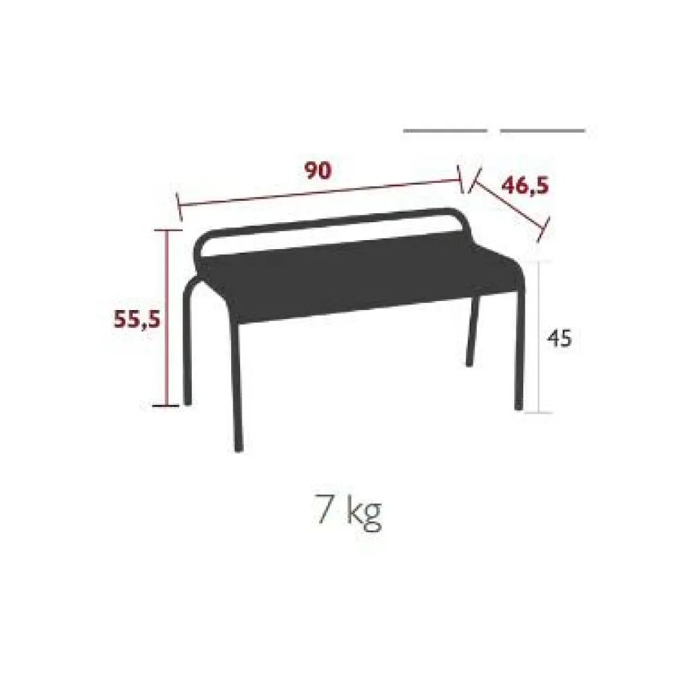 Die Luxembourg Gartenbank ohne Rückenlehne ist 90cm lang und 46,5cm breit. Sie hat eine Sitzhöhe von 45cm und ist 55,5cm hoch. Das praktische Gartenmöbel hat ein Gewicht von 7kg. Es ist vielen Farben erhältlich. Passend dazu gibt es aus der Luxembourg-Serie Bänke mit Rücken- und Armlehnen sowie verschiedene Stühle und Tische.