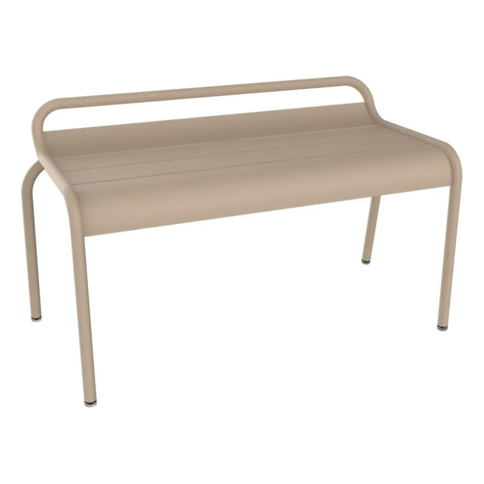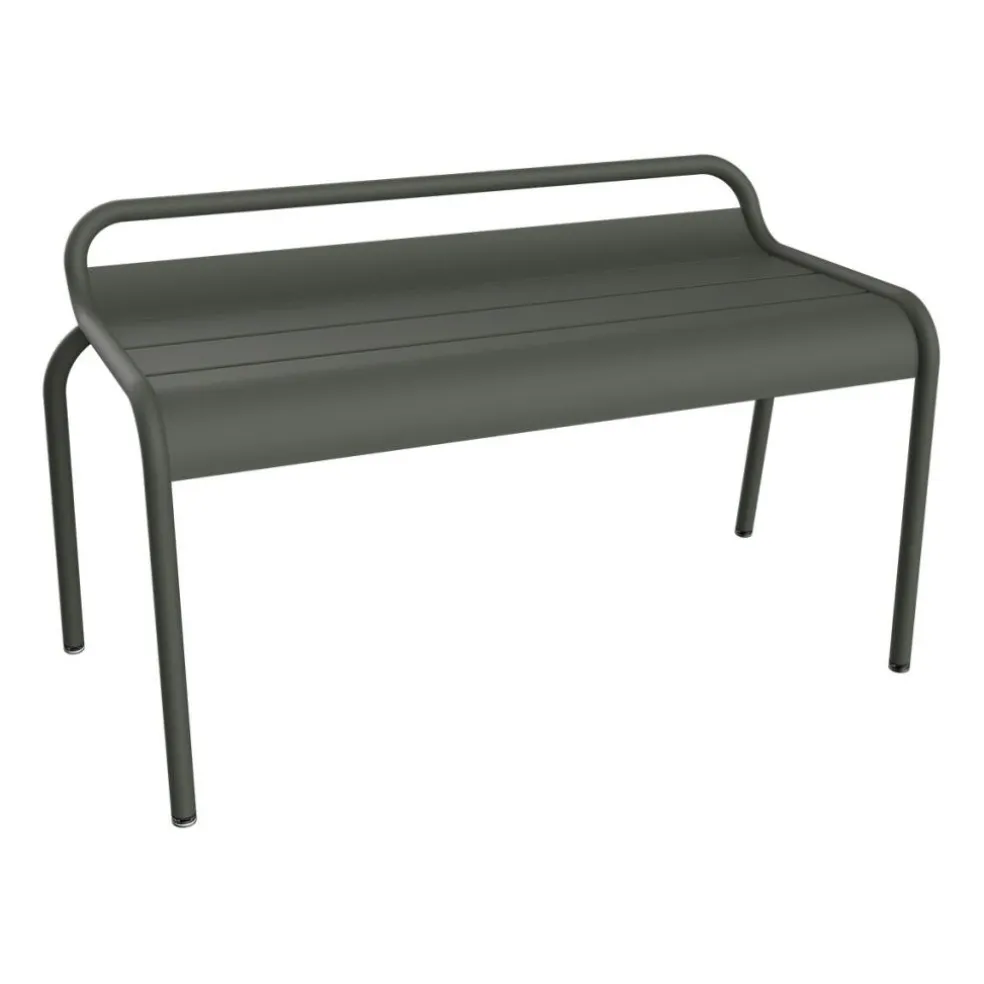 Gebogene Latten und ein Gestell aus hochwertigem Aluminium sind die Grundelemente der Luxembourg Gartenbank ohne Rückenlehne. Die auffällig gewölbte Sitzfläche und der an der Rückseite hochgezogene Rahmen versprechen dabei einen komfortablen Sitz, während die nach hinten ausgestellten Beinen für eine hohe Stabilität sorgen. Mit einer Polyester-Pulverlackierung versehen, garantiert diese Gartenbank eine langlebige Witterungsbeständigkeit. Sie macht sich gut an einer Hauswand, in einem Atrium oder auf der Terrasse und kann ebenso unter freiem Himmel mitten im Garten stehen. So passt die Luxembourg Gartenbank ohne Rückenlehne an den Wegrand in einem Park, in den Hotelgarten oder auf öffentliche Plätze.