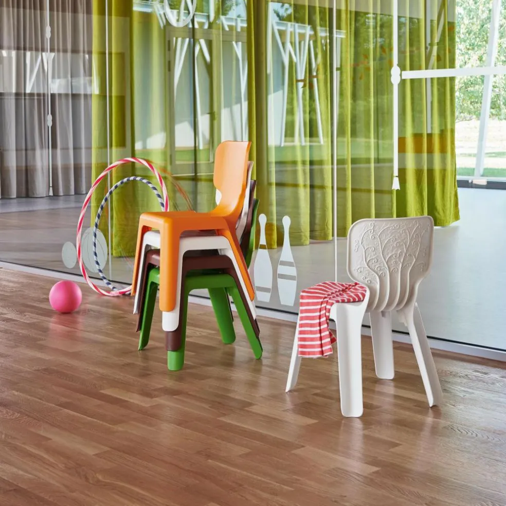 Eltern wird es freuen, dass der Magis Me Too Alma Kinderstuhl stapelbar ist. So ist es problemlos möglich, mehrere Kinderstühle platzsparend zu verstauen. Der Stuhl ist in verschiedenen fröhlichen Farben erhältlich.
