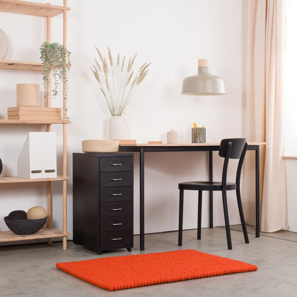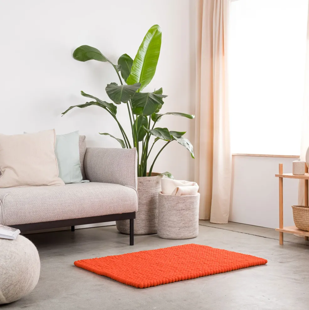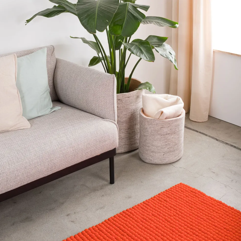 Der Mats Filzkugelteppich rechteckig wurde für die Marke myfelt entworfen. Das reine Naturprodukt greift sich angenehm an und dämpft Tritte perfekt. Da er Schall vermindert, wird er auch gerne in großen Büros eingesetzt. Filz reguliert außerdem die Temperatur und fühlt sich im Sommer kühl und im Winter wohlig warm an.