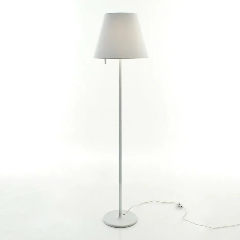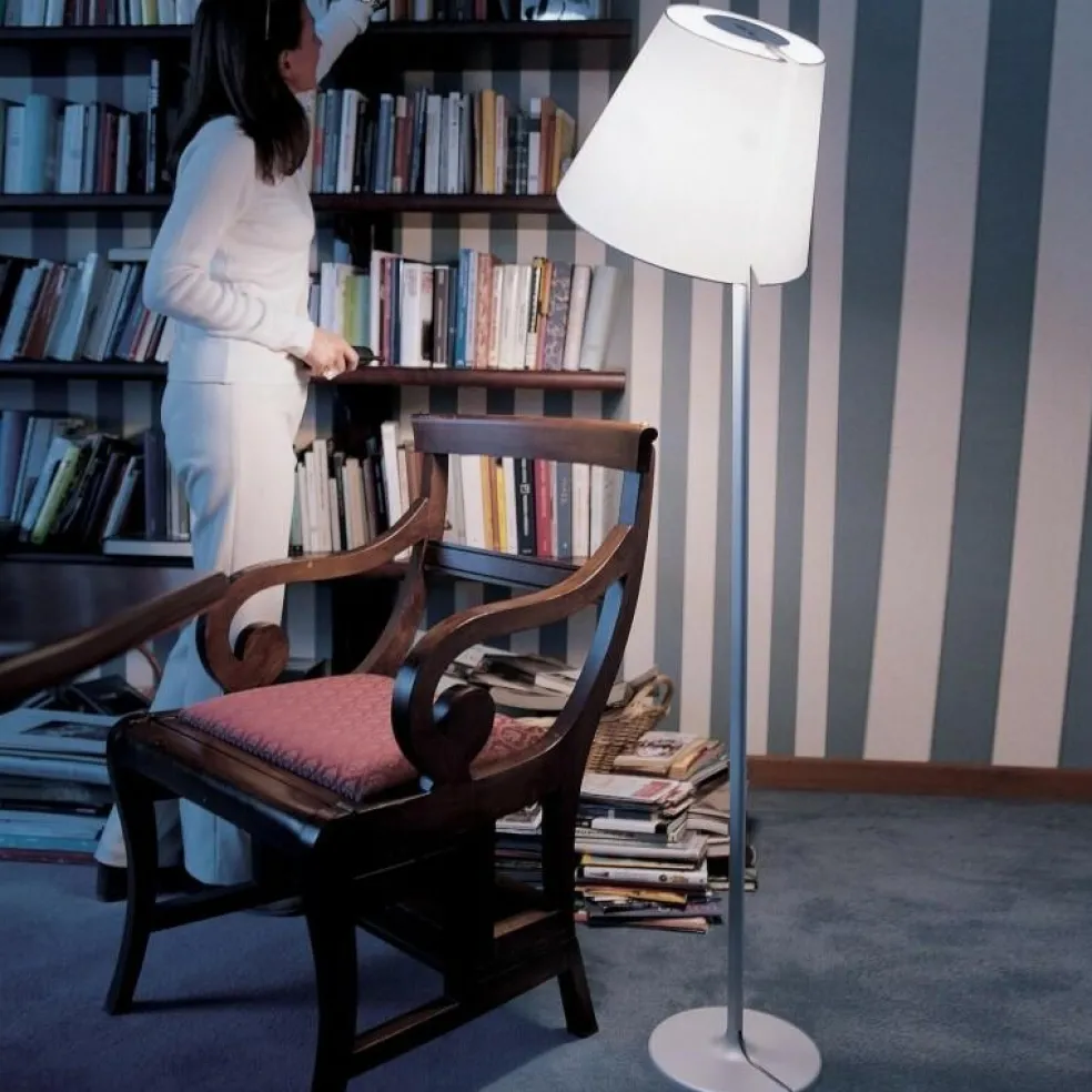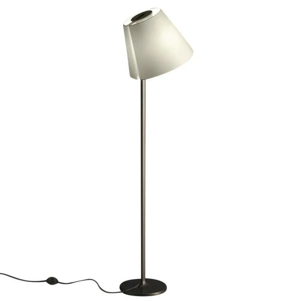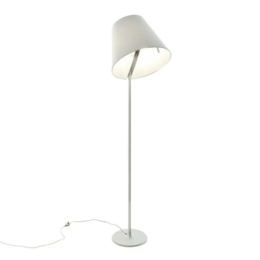 Die Melampo Terra Stehleuchte wurde von Adrien Gardère für die Marke Artemide entworfen. Die Kollektion umfasst unter anderem auch Parete-Varianten für die Wandbefestigung und Tavolo-Leuchten, die schlichte Tischleuchten darstellen. Das Modell Terra steht auf dem Boden.