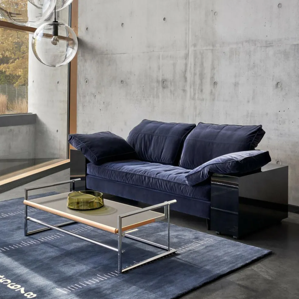 Der funktionale Tisch ist Teil der Kollektion Eileen Gray. Diese umfasst weitere Beistelltische, Stühle, Sessel, Teppiche und Leuchten im modernen Stil und passend zum Menton Beistelltisch höhenverstellbar.