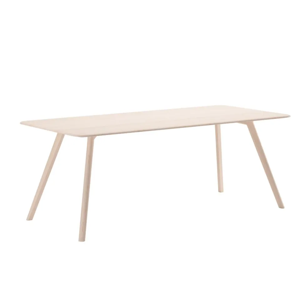 Der Meyer Large Esstisch 200x92x73cm ist Teil einer umfangreichen Serie an Tischen, die es in verschiedenen Größen gibt. Sein Markenzeichen sind die ausgestellten Tischbeine aus Eichenholz, die rund geformt sind und schräg zur Tischplatte führen. Die Platte überragt das Gestell an beiden Seiten ganz deutlich. Hergestellt ist sie aus gewachstem Eichenholz. Sie ist mit einer speziellen Legierung versehen, die das Modell unempfindlich gegen Kratzer macht. Die Tischplatte kann immer wieder nachgewachst werden und sieht daher auch nach vielen Jahren noch aus wie neu.