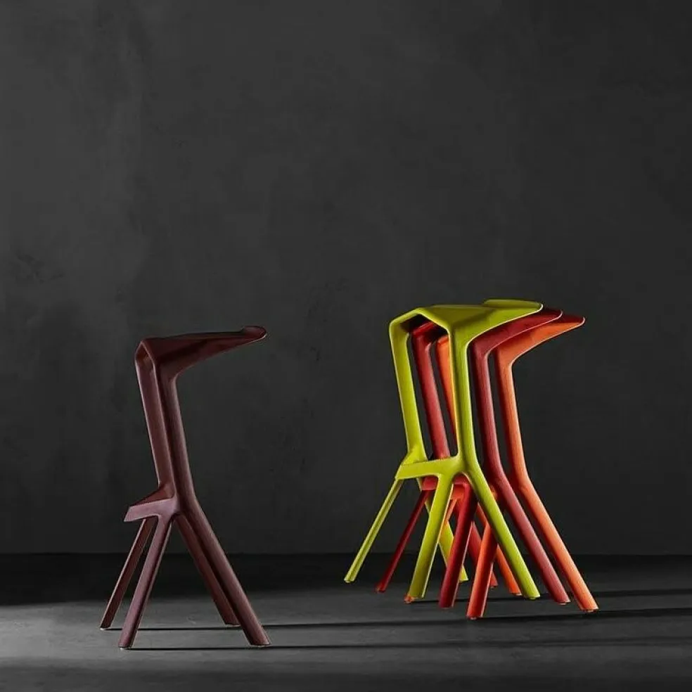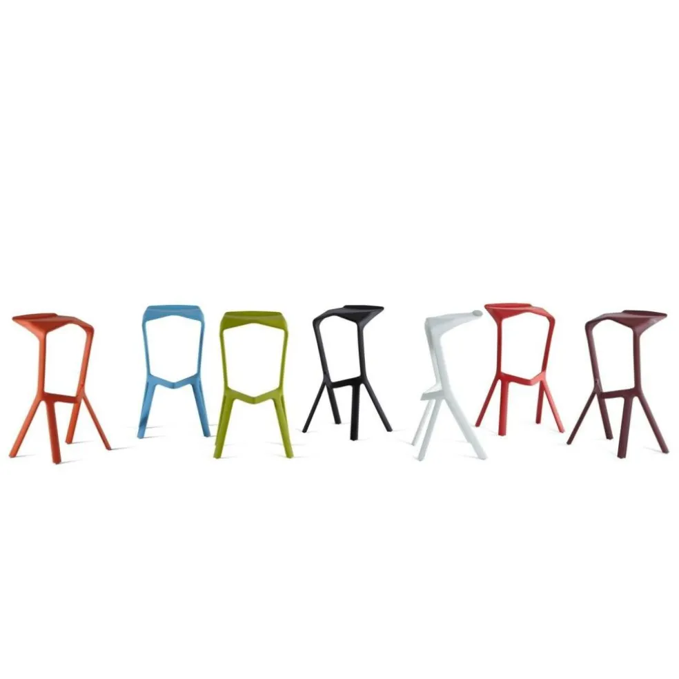 Bei diesem Barhocker gibt es nichts, was nicht innovativ ist. Ein gewöhnlicher Barhocker ist dagegen ein Sammelsurium aus Komponenten und Materialien. Miura reicht eines, und das ist nicht irgendein Material: Verstärktes Spritzgusspolypropylen ist leicht und stabil zugleich. Mit der seltsam eckigen und nur auf den ersten Blick eher ungemütlich anmutenden Form, ist der Miura Barhocker ein Star im provozierenden Oeuvre von Grcic.