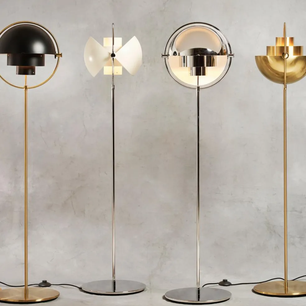 Die Multi-Lite Stehleuchte Gestell Messing wurde von Louis Weisdorf für die Marke Gubi entworfen. Dabei handelt es sich um ein außergewöhnliches Modell, dass sich durch flexible Gestaltungsmöglichkeiten auszeichnet. Die Serie Multi-Lite entwarf der Designer 1972 und kreierte damit neue Modelle, die mit den sich mehrfach wiederholenden Elementen seine bisherige Designgewohnheit durchbrachen. Die vielseitig verwendbare und in verschiedenen Farben erhältliche Leuchte ist ein edles Zusatzlicht für den Wohn- oder Schlafbereich. Auch für das Arbeitszimmer ist sie ideal.