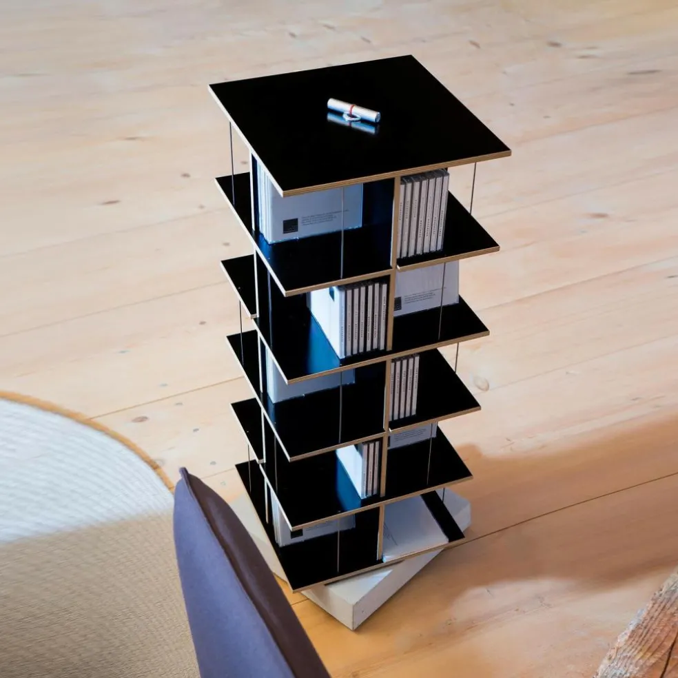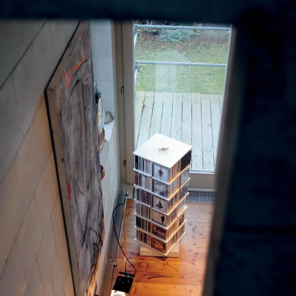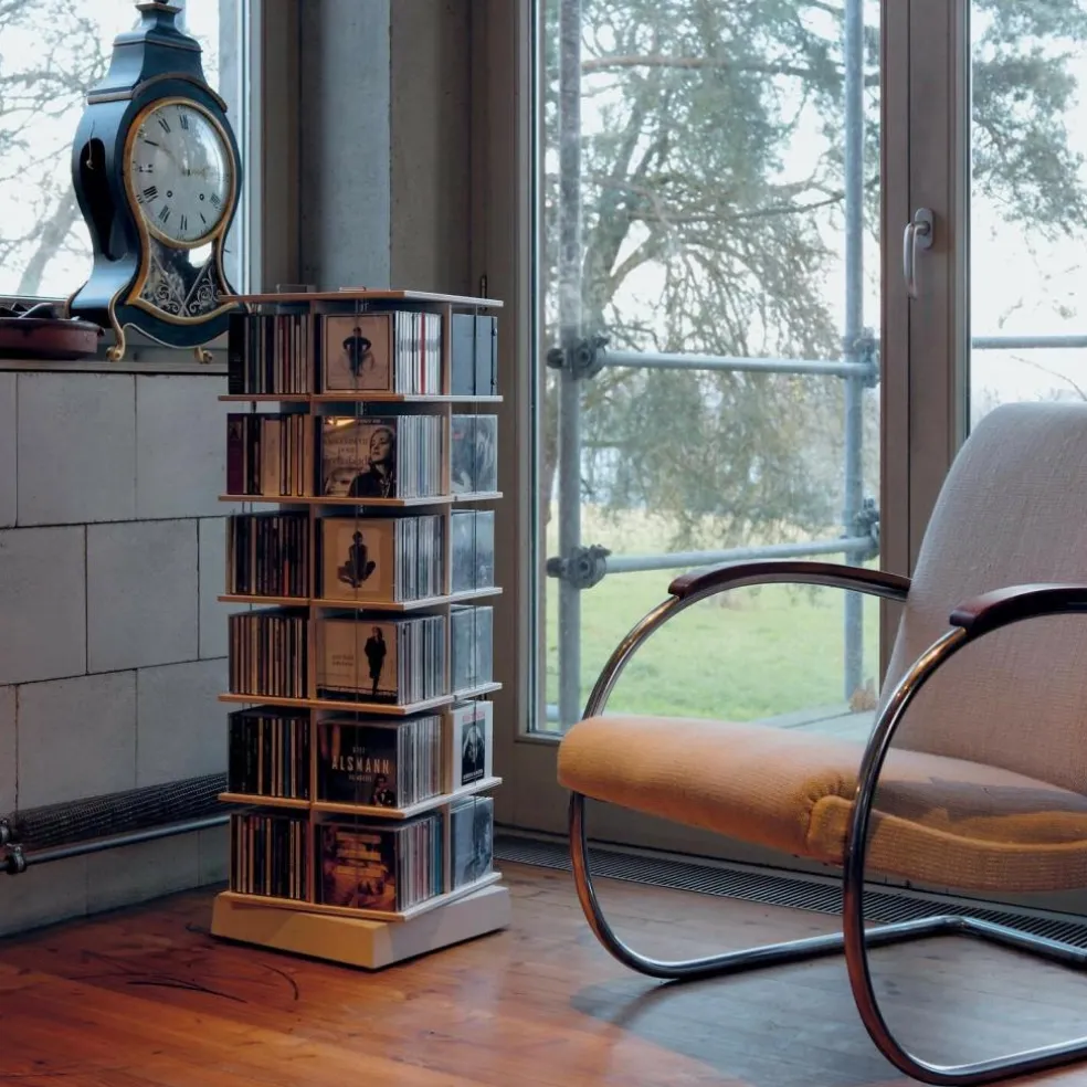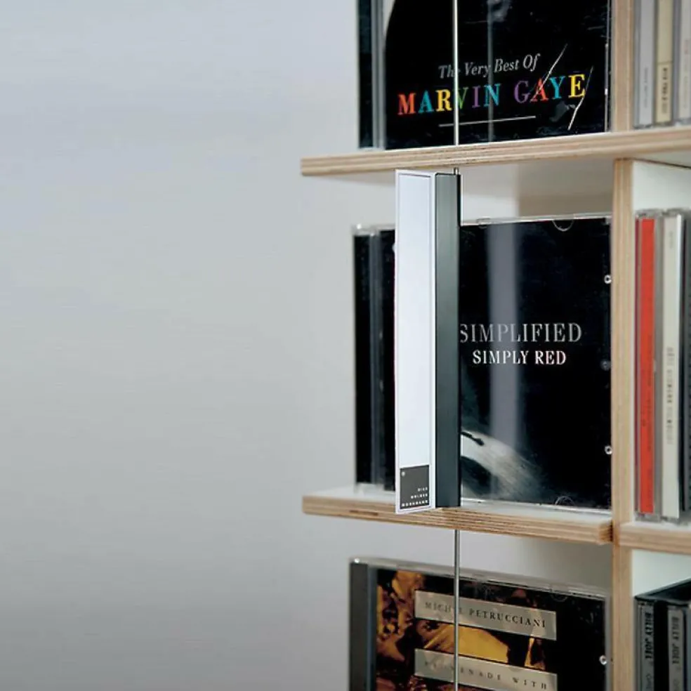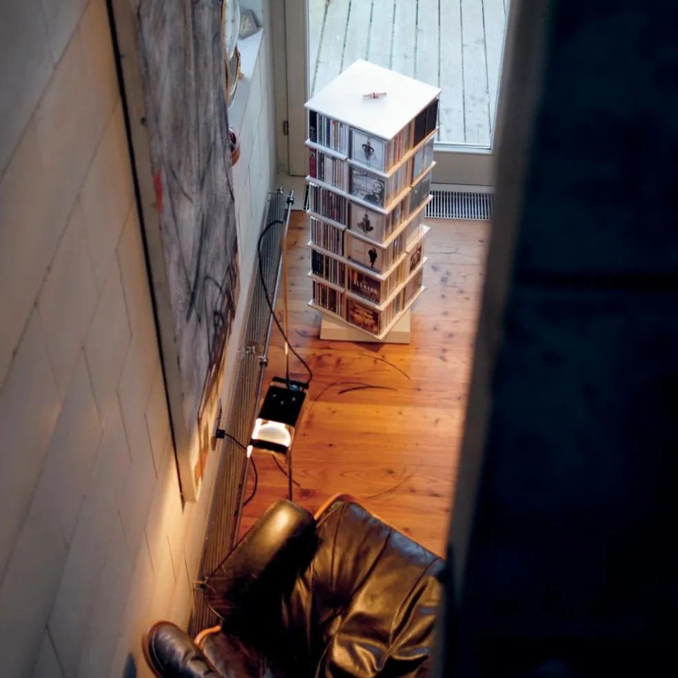 Das außergewöhnliche Musikstapler CD-Regal wurde von Designer Tom Fischer für den Hersteller Moormann entworfen. Es überzeugt durch sein enormes Platzangebot auf kleiner Fläche. Das Regal ist individuell bis zu einer Höhe von maximal zehn Etagen erweiterbar.
