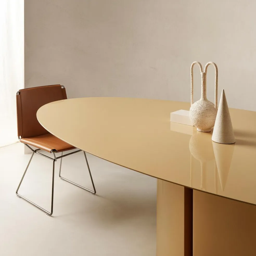 Der Neil Stuhl Leder wurde von Jean-Marie Massaud für die Marke MDF Italia entworfen. Die Kombination aus robustem Stahl und haptisch angenehmem Leder zeichnet die Kreation des französischen Designers aus.
