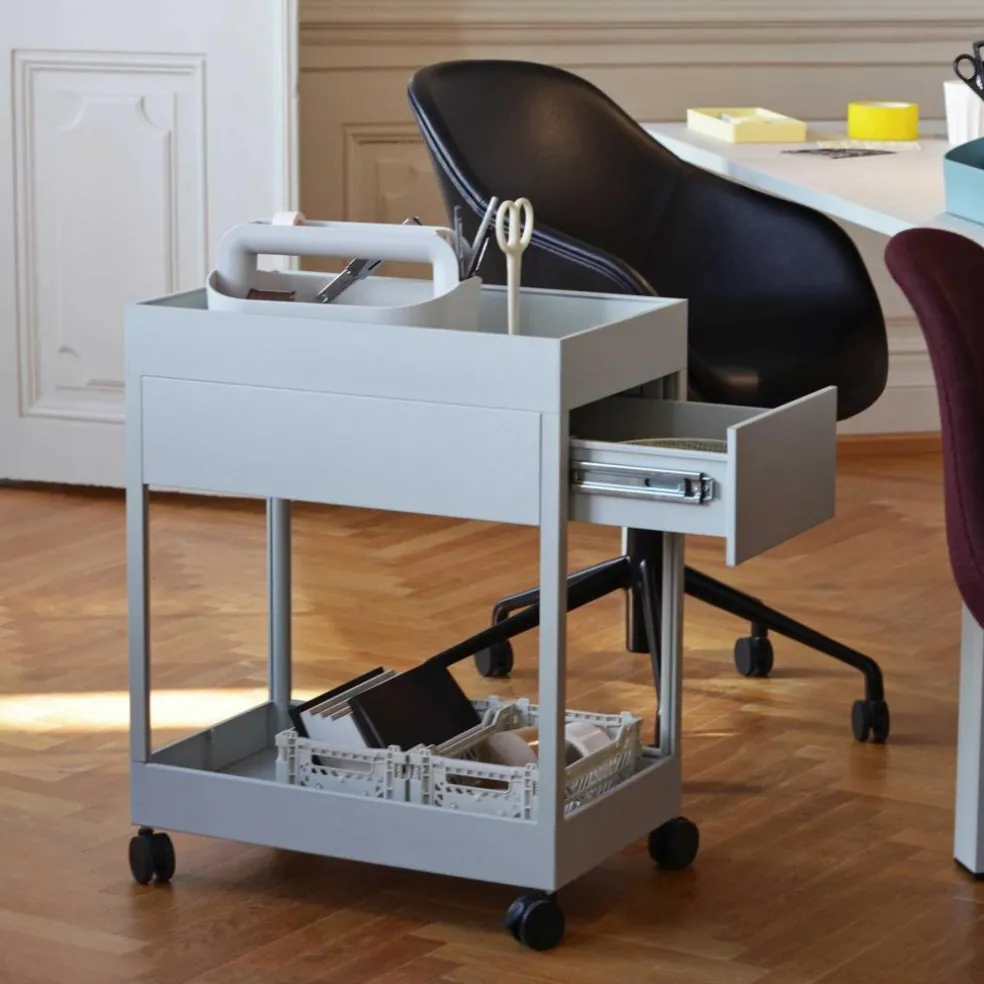 Der New Order Rollwagen A wurde von Stefan Diez für die Marke HAY entworfen. Er gehört zur umfangreichen Büromöbelserie New Order, die mit Tischen und Regalen für Ordnung sorgt. Das modulare System lässt sich beliebig erweitern und somit an die jeweilige Arbeitssituation anpassen.
