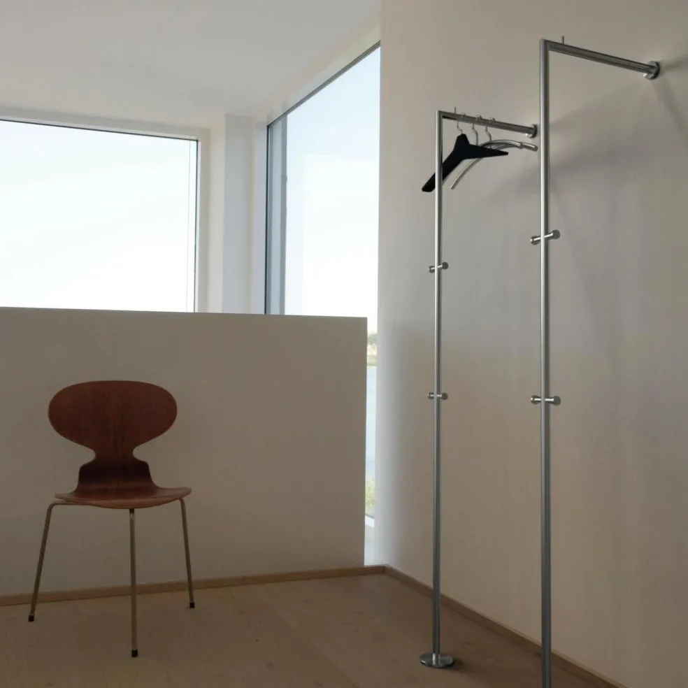 Kombinieren Sie zum Beispiel zwei Nova Kleiderständer wandlehnend mit einem attraktiven Spiegel und einem Schuhregal zu einem Blickfang in Ihrem Flur. Bauen Sie den Kleiderständer im Bad auf, um Oberbekleidung oder Bademäntel aufzuhängen, oder benutzen Sie ihn im Ankleidezimmer für lange Kleider und Mäntel. Dieser elegante Kleiderständer eignet sich ausgezeichnet auch für eine Boutique oder eine Maßschneiderei, um hochwertige Bekleidung ansprechend zu präsentieren.
