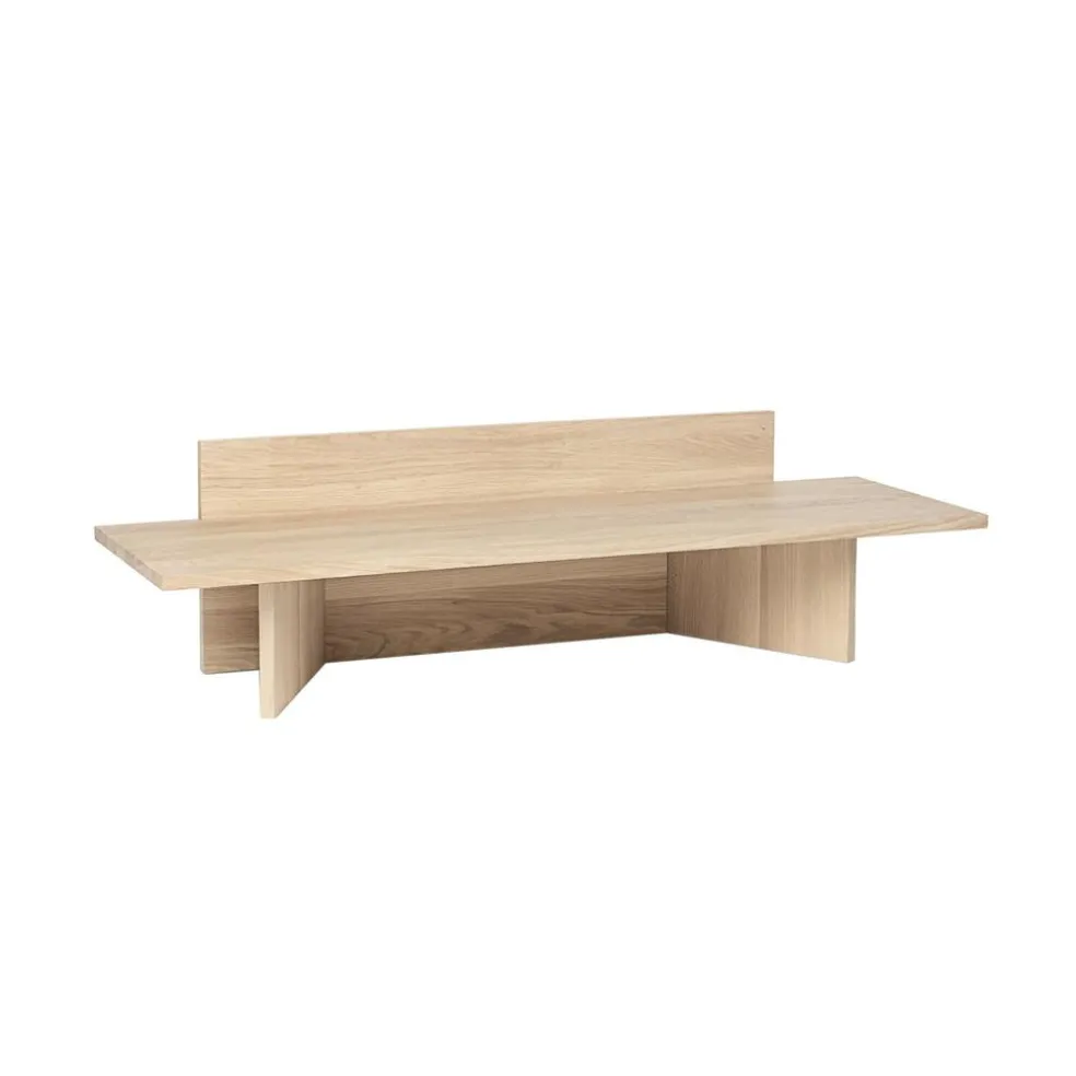 Einflüsse unterschiedlicher Länder sind in der Oblique Bank vereint: Die Designer bedienen sich alter Holzbearbeitungstechniken aus Japan. Gepaart ist das traditionelle Handwerk mit schlichtem Design, das in Skandinavien üblich ist. Die Oblique Bank drückt eine erdverbundene Art zu leben aus. Sie besteht aus massivem Eichenholz, das aus nachhaltiger Forstwirtschaft stammt. Das ist an dem FSC®-Siegel zu erkennen, mit dem das schlichte Möbelstück ausgezeichnet ist. Es besteht aus einer Sitzfläche und einer Rückplatte, die schmaler geschnitten ist. Zwei schräg angesetzte Bretter dienen als Füße. Die Oblique Bank passt in den Wohnbereich, ein Büro und wird gerne im Eingangsbereich verwendet. Auf der schlichten Bank nimmt man gerne Platz, um sich die Schuhe anzuziehen. Sie kann jedoch auch dazu verwendet werden, Bücher und Dekorationsartikel abzustellen.