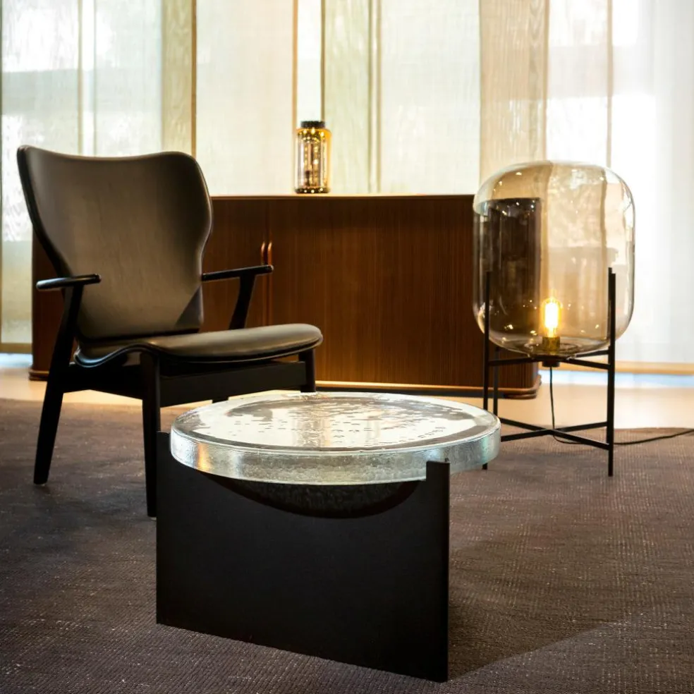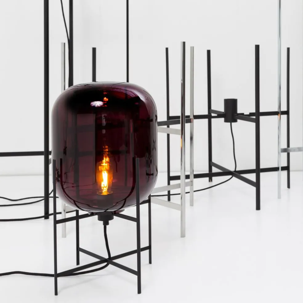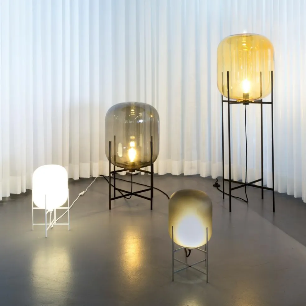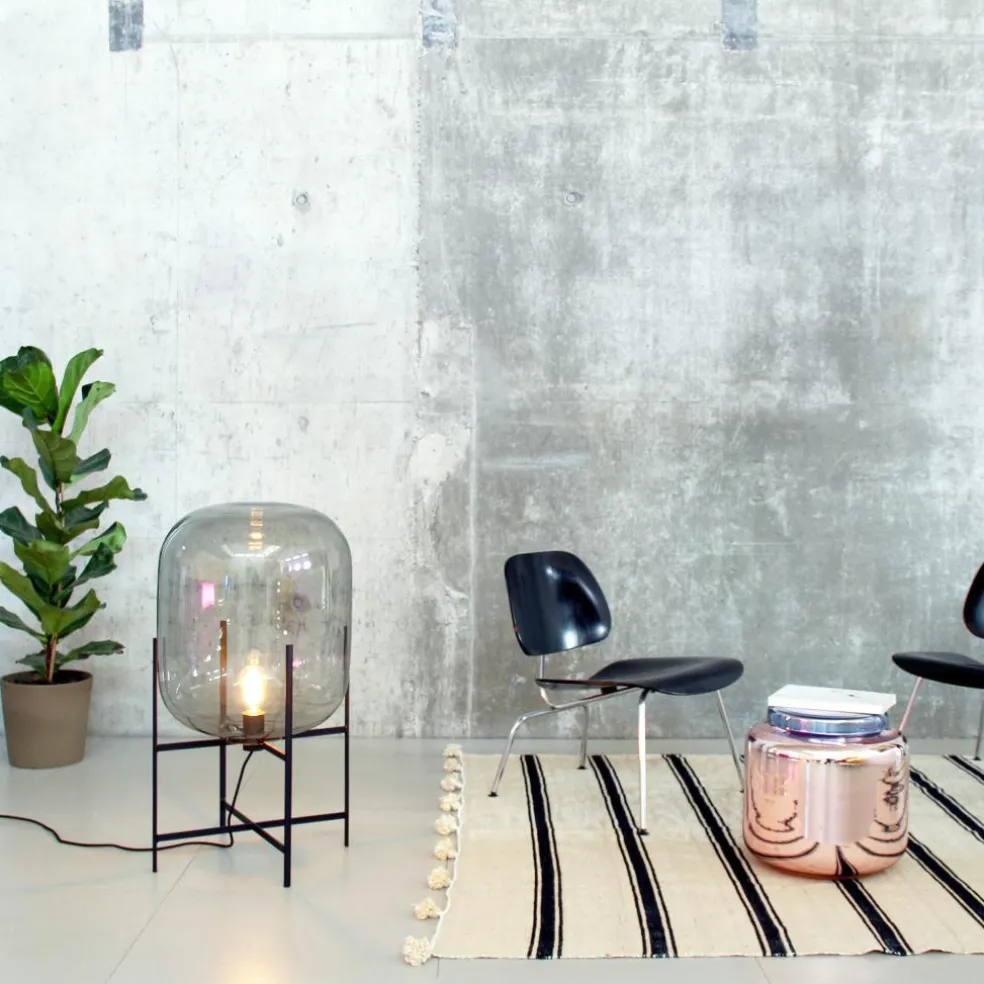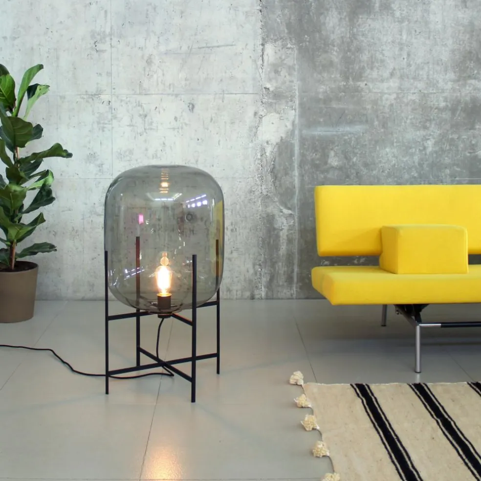 Ebenso wie die geschichtsträchtigen Bauten besteht auch die Oda Medium Stehleuchte Gestell schwarz aus einem zarten Metallgestell, das aus pulverbeschichtetem Stahl gefertigt wurde. Auf den vier Füßen ist ein ballonförmiger Leuchtenschirm befestigt. Die insgesamt 85 cm hohe Leuchte wurde in kunstvoller Handarbeit gefertigt. Der mundgeblasene Glaskörper, in dem sich das Leuchtmittel befindet, wird zum Kunstobjekt in jedem Raum. Warmes Licht strahlt aus dem Leuchtenschirm mit 45 cm Durchmesser in alle Richtungen aus. Somit wird die Oda Medium Stehleuchte Gestell schwarz zum sehenswerten Designerstück im Wohnzimmer, in der Bibliothek oder in jedem anderen Raum.