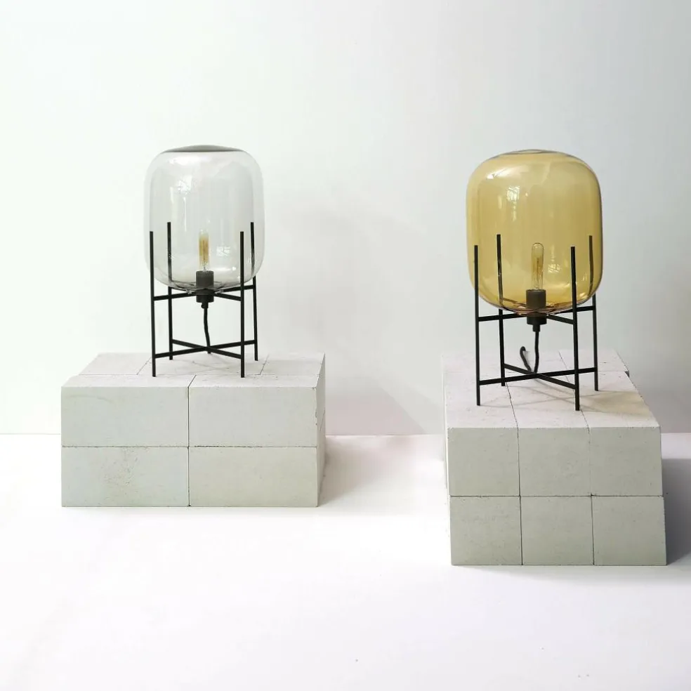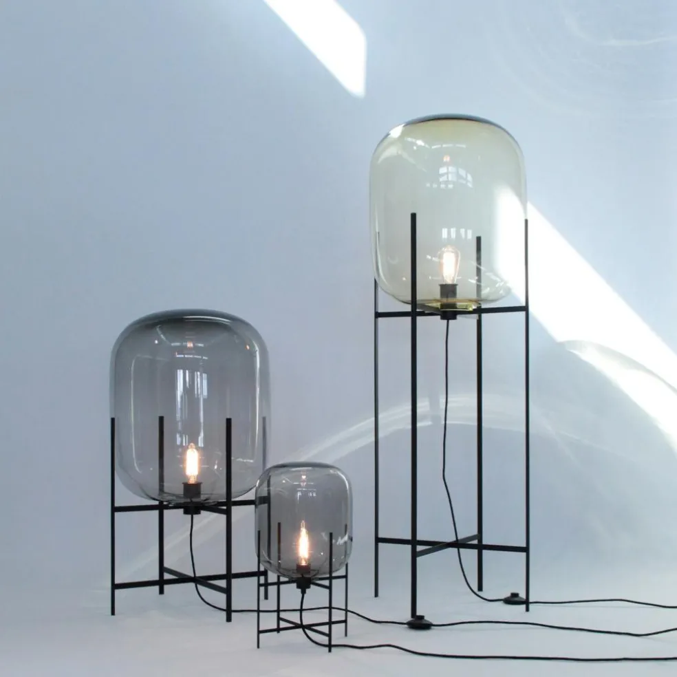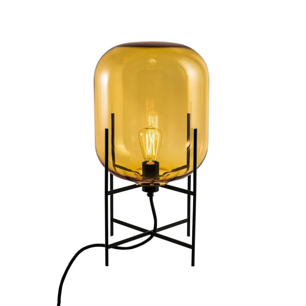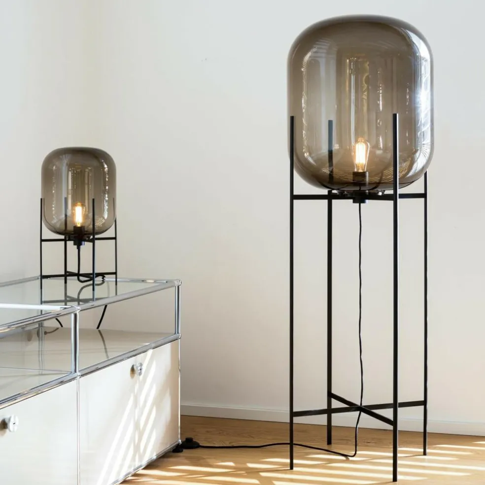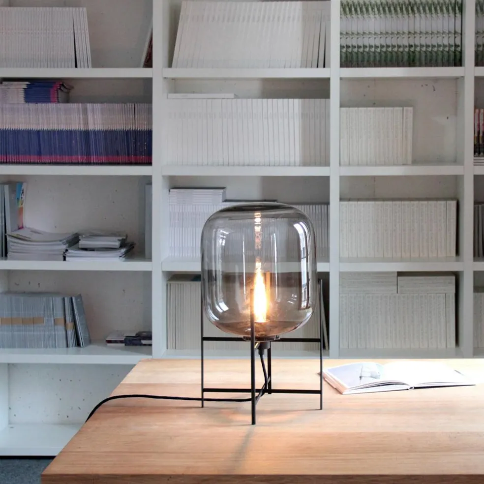 Wie in prall mit Licht gefüllter Ballon sieht die Oda Small Tischleuchte Gestell schwarz aus. Sie wird auf jedem Schreibtisch zum Blickfang, ist jedoch auch im Schlafzimmer als Nachttischleuchte eine stilvolle Bereicherung. Die Basis für die 45 cm hohe Leuchte bildet ein Gestell aus hochwertigem Stahl. Daran ist ein 300 cm langes Kabel befestigt, das für die Stromversorgung sorgt. Auf dem filigranen Metallgestell balanciert ein bauchiges, lang gezogenes Glas. Es bildet einen interessanten Kontrast zu dem nüchternen Metallgestell.