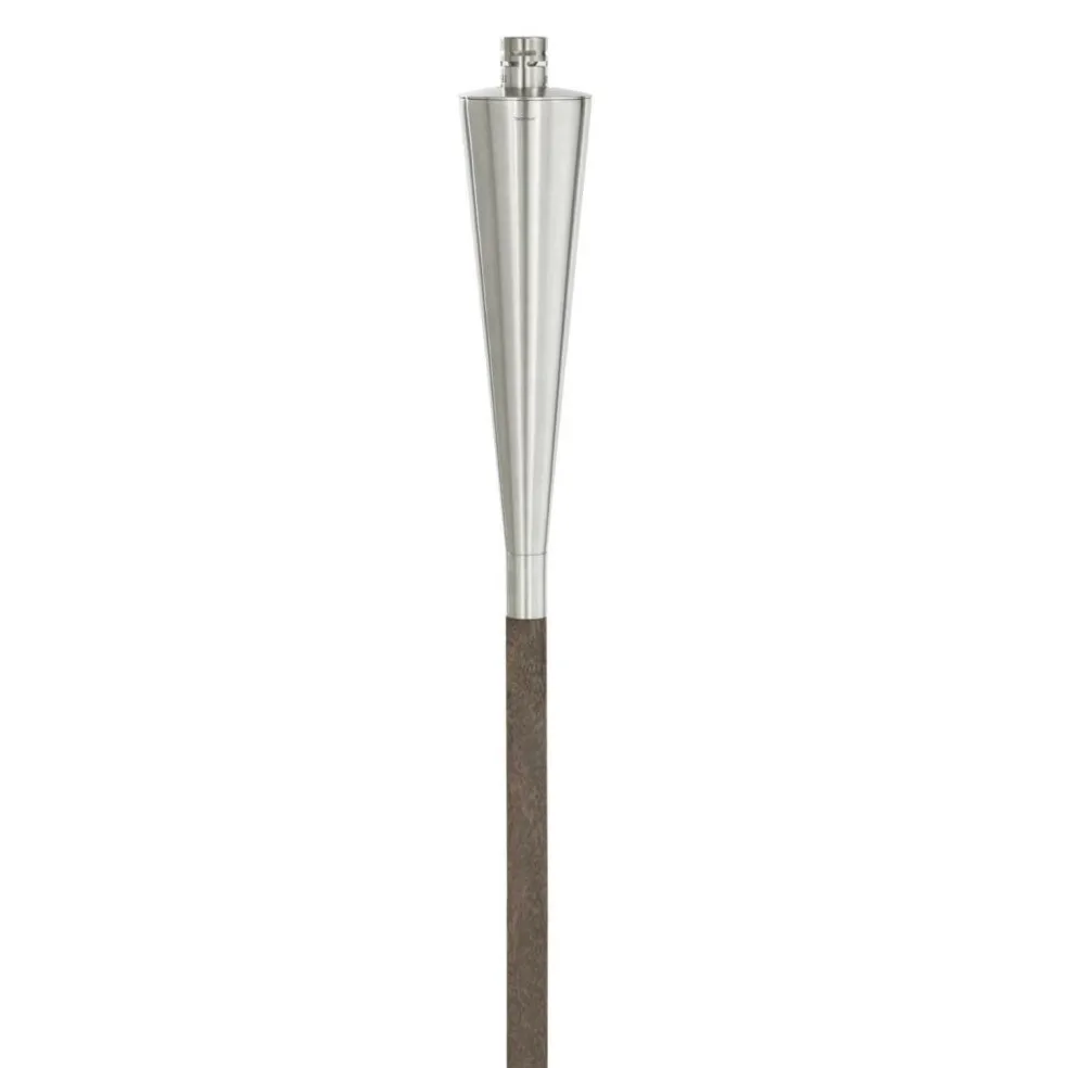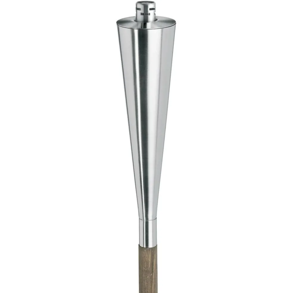 Die Orchos Gartenfackel von blomus wird mit einem Holzstamm geliefert, der am unteren Ende im Sinne eines Erdspießes spitz zuläuft und leicht in der Erde oder Rasenflächen zu befestigen ist.