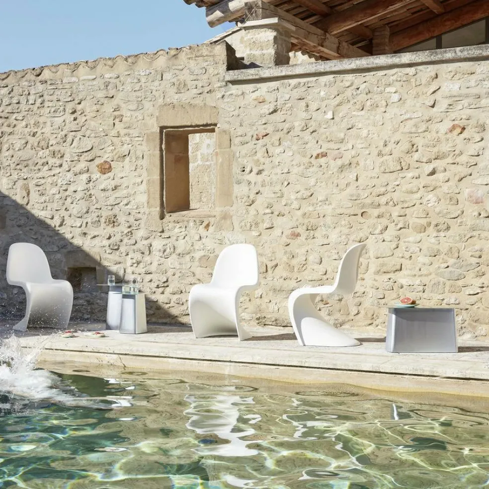 Wenn man die Rückenlehne mitrechnet, erreicht der Panton Chair Neue Maße eine Höhe von 86 cm. Die Breite beträgt 50 cm und die Tiefe 61 cm. Die Rückenlehne ist 39 cm hoch und die Sitzhöhe beträgt 44 cm. Der Panton Chair Neue Maße ist wetterfest und kann auch für den Außenbereich eingesetzt werden. Allerdings sollte er nicht zu lange dem UV-Licht aussetzt werden, weil die Farbe sonst ausbleicht.