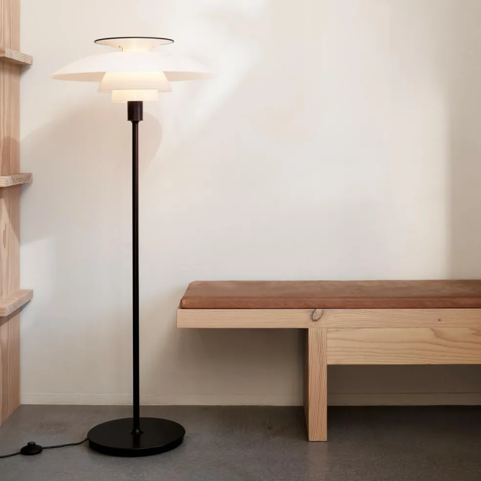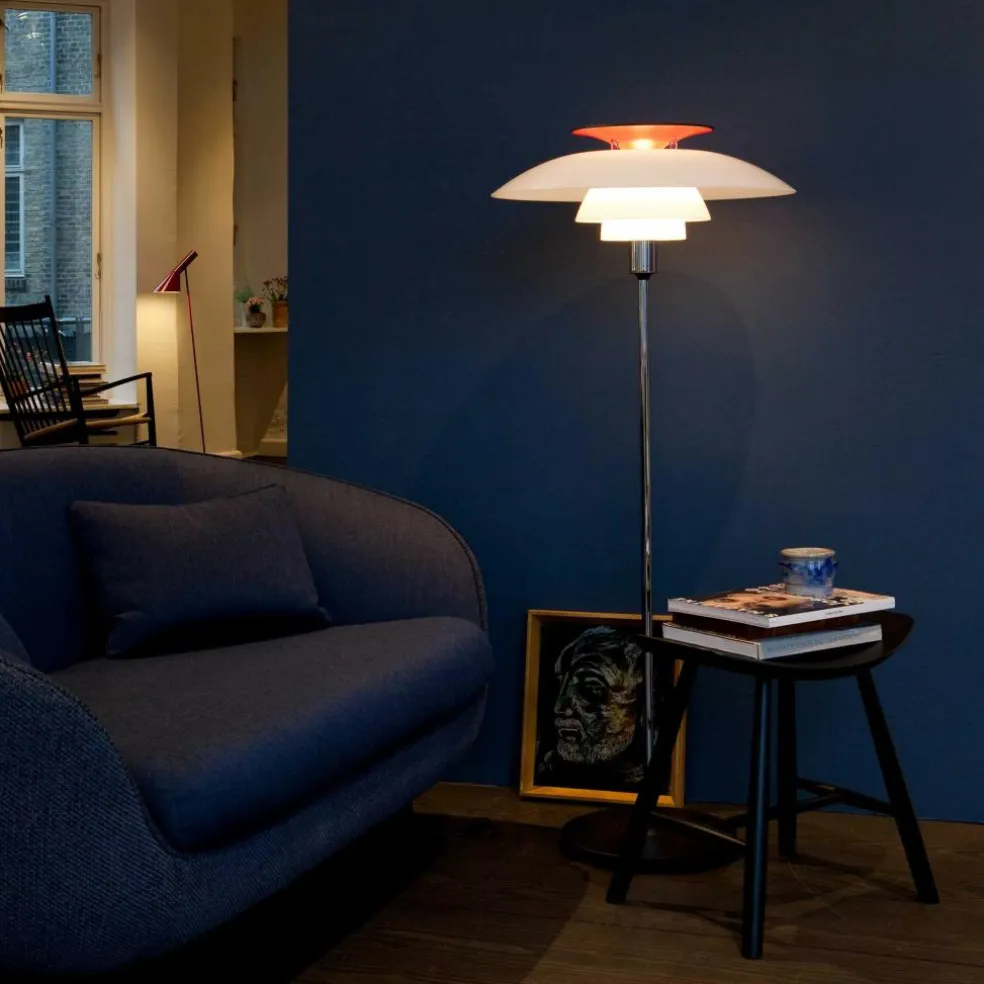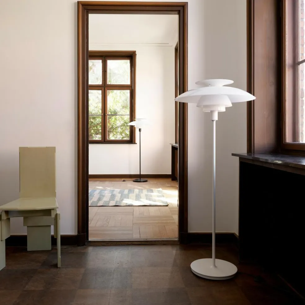 Die PH 80 Stehleuchte wurde von Poul Henningsen für die Marke Louis Poulsen entworfen. Das markante Designkonzept basiert auf dem Dreischirm-System, das der dänische Designer für die Weltausstellung in Paris 1925 entwickelte. Heute ist sie Teil der PH-Kollektion. Ihre Bezeichnung bezieht sich auf den 80. Geburtstag, den der Designer bei Veröffentlichung der PH 80 Stehleuchte im Jahr 1974 gefeiert hätte.