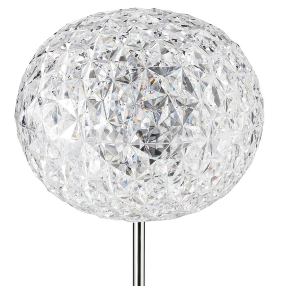 Die Planet LED Stehleuchte wurde vom Designer Tokujin Yoshioka für den Hersteller Kartell entworfen. Der Designer hat diese spektakuläre Stehleuchte aus Kunststoff entworfen. Es ist ihm gelungen, ganz ohne Kristalle einen funkelnden Lichteffekt zu kreieren und so ein kleines Meisterwerk zu gestalten. Die beeindruckende Leuchte überzeugt künstlerisch und technisch. Mit dem runden Lampenschirm kann sie in vielen Fällen als Dekorationselement eingesetzt werden.