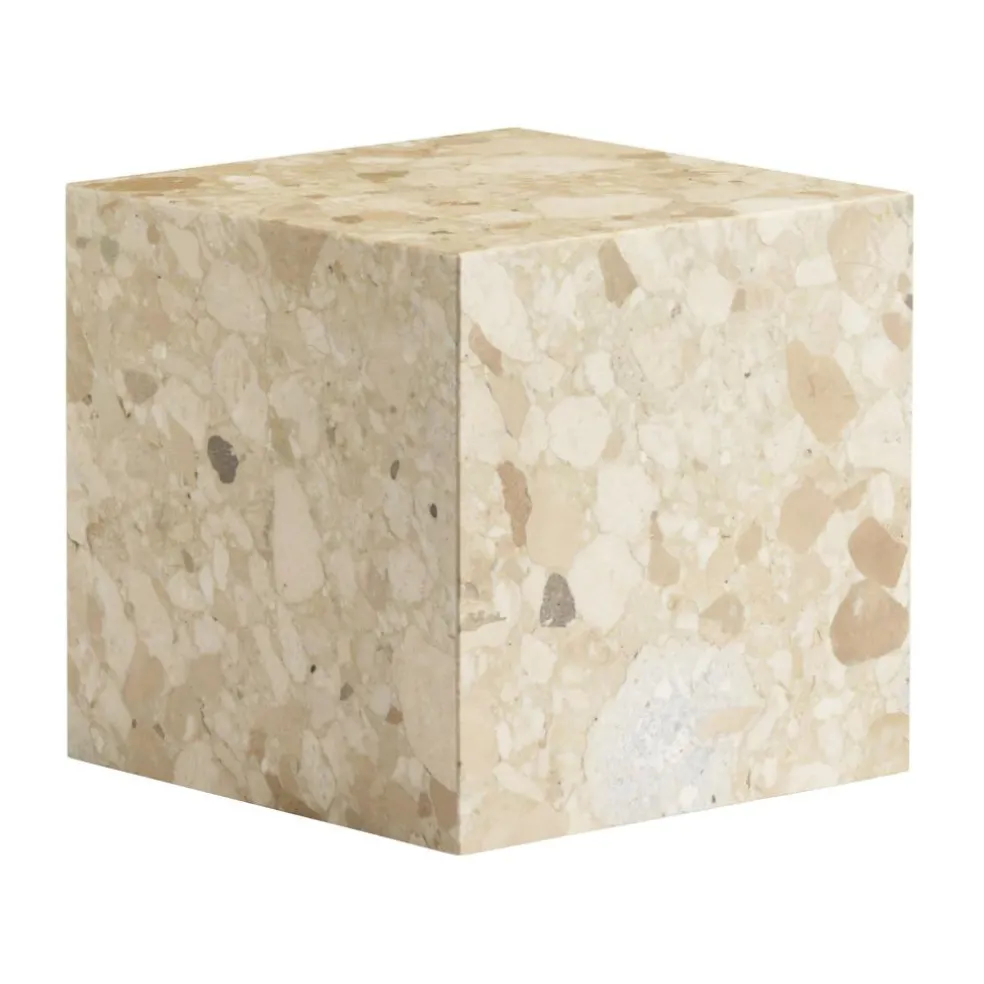 Der Plinth Cubic Beistelltisch ist jeweils 40 cm breit, tief und hoch. Der imposante Tisch wiegt 37,5 kg.