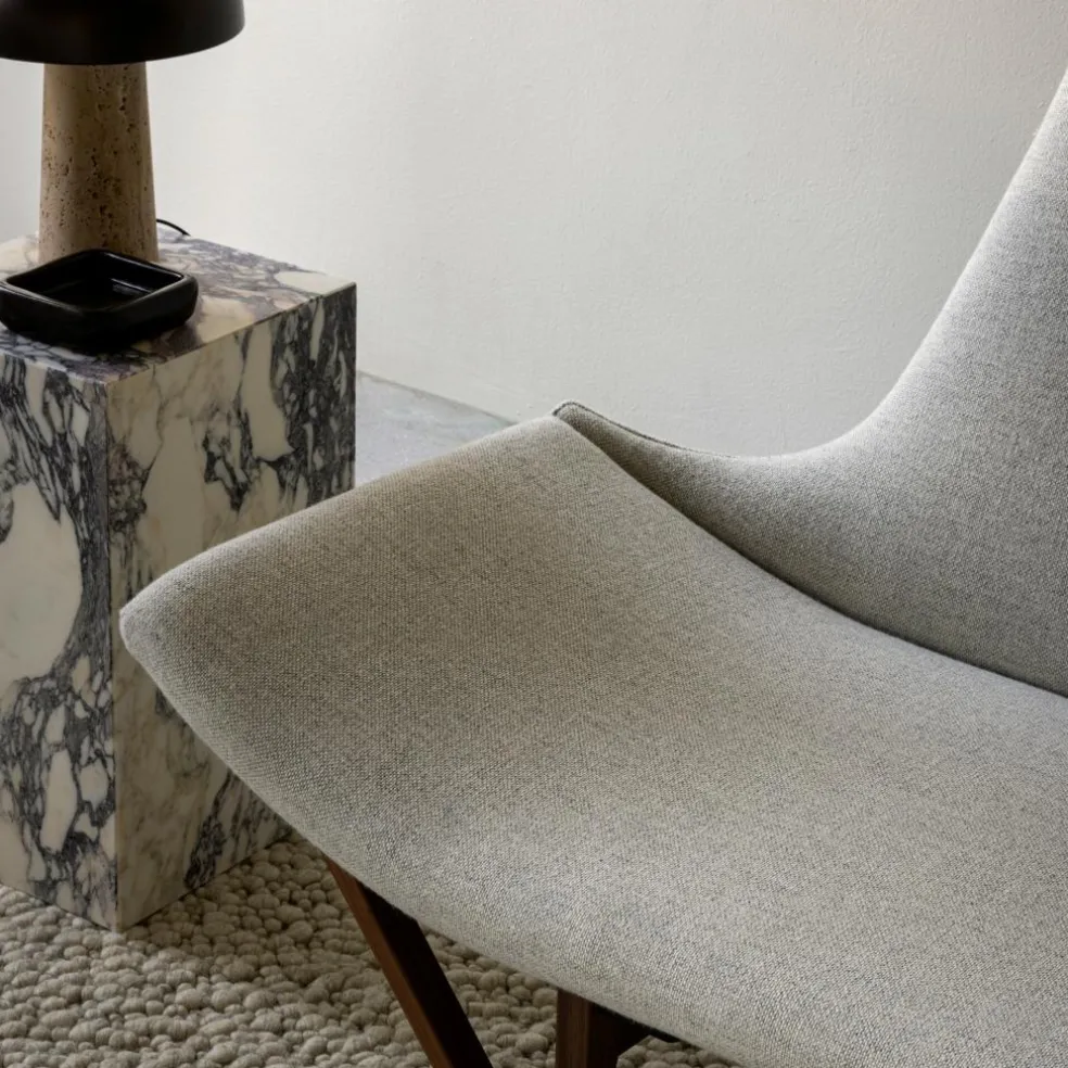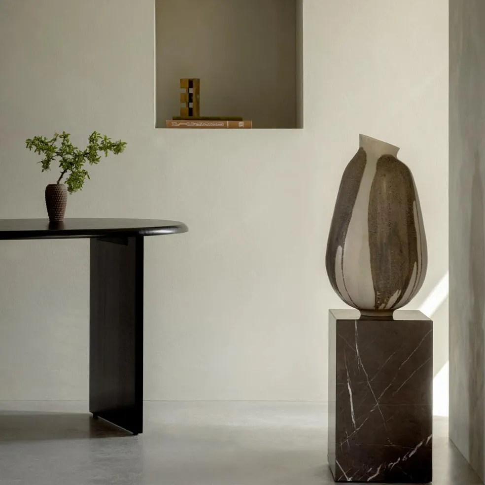 Der Plinth Talll Beistelltisch wurde von Norm Architects für die Marke Audo entworfen. Dabei handelt es sich um ein schlichtes Möbelstück, das den Werkstoff in den Vordergrund rückt.