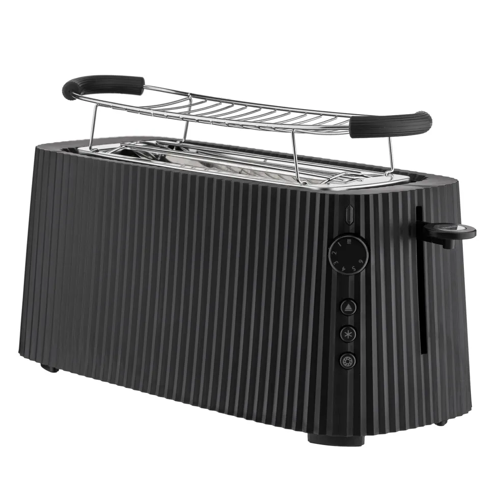 Der Plissé MDL15 Toaster wurde von Michele de Lucchi für die Marke Alessi entworfen. Der Name ist bei diesem Toaster Programm: Mit seinem auffälligen Riffeldesign erinnert er namensgebend an den Faltenwurf eines Plissés.