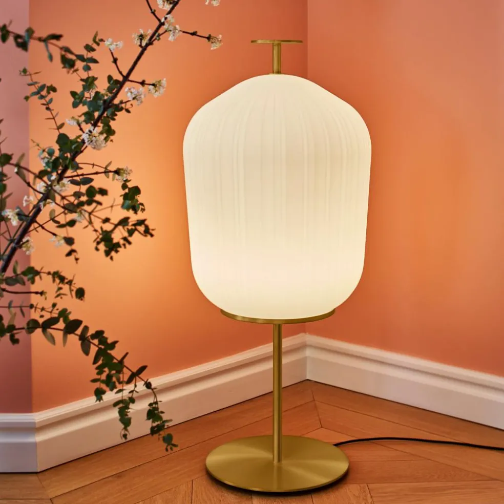 Die elegante Plissée LED Stehleuchte ist in drei verschiedenen Farbvarianten verfügbar. Eine schlichte Struktur aus Messing oder Aluminium auf einem flachen Sockel mit Filzunterlage trägt dabei die aus mundgeblasenem Opalglas hergestellte Leuchte. Die Abmessungen der Leuchte betragen 92cm in der Höhe und 40cm im Umfang. Der Durchmesser des Fußes beträgt 31cm und der des Schirms 40cm. Mit dem auf dem oberen Teil der Leuchte platziertem Schalter lässt sie sich nicht nur ein- und ausschalten, sondern auch dimmen. Die integrierte Memoryfunktion wählt die zuletzt verwendete Lichtstärke. Das erforderliche LED-Leuchtmittel für die Plissée LED Stehleuchtemit 19W ist im Lieferumfang enthalten. Die im Wohnzimmer oder im Lounge-Bereich verwendbare Leuchte ist einfach mit Tuch und Glasreiniger zu reinigen.