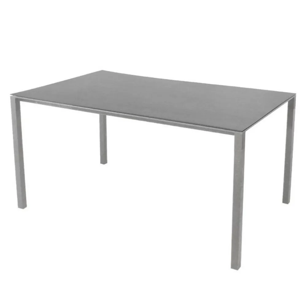 Die Pure-Kollektion wird mit ihren Tischen in unterschiedlichen Größen jedem Platzangebot gerecht. Allesamt sind sie aus langlebigen Materialien gefertigt. Das schlichte Gestell mit vier Beinen besteht aus Aluminium. Für die Tischplatte verwenden die Designer Keramik. Die Oberfläche des Pure Gartentisch 150x90cm ist kratzfest und sieht auch nach vielen Jahren aus wie neu. Außerdem erweist sich das Modell als äußerst pflegeleicht: Staub und Schmutz lassen sich einfach mit einem feuchten Tuch abwischen. Da ihm Nässe nichts anhaben kann, bleibt der Tisch auch bei Regen im Freien. Das Material ist darüber hinaus UV-beständig und bleicht daher nicht aus. Das Modell wird zum beliebten Treffpunkt auf jeder Terrasse oder dem Balkon.
