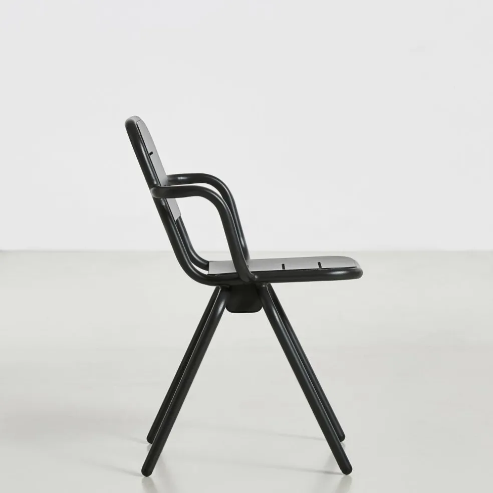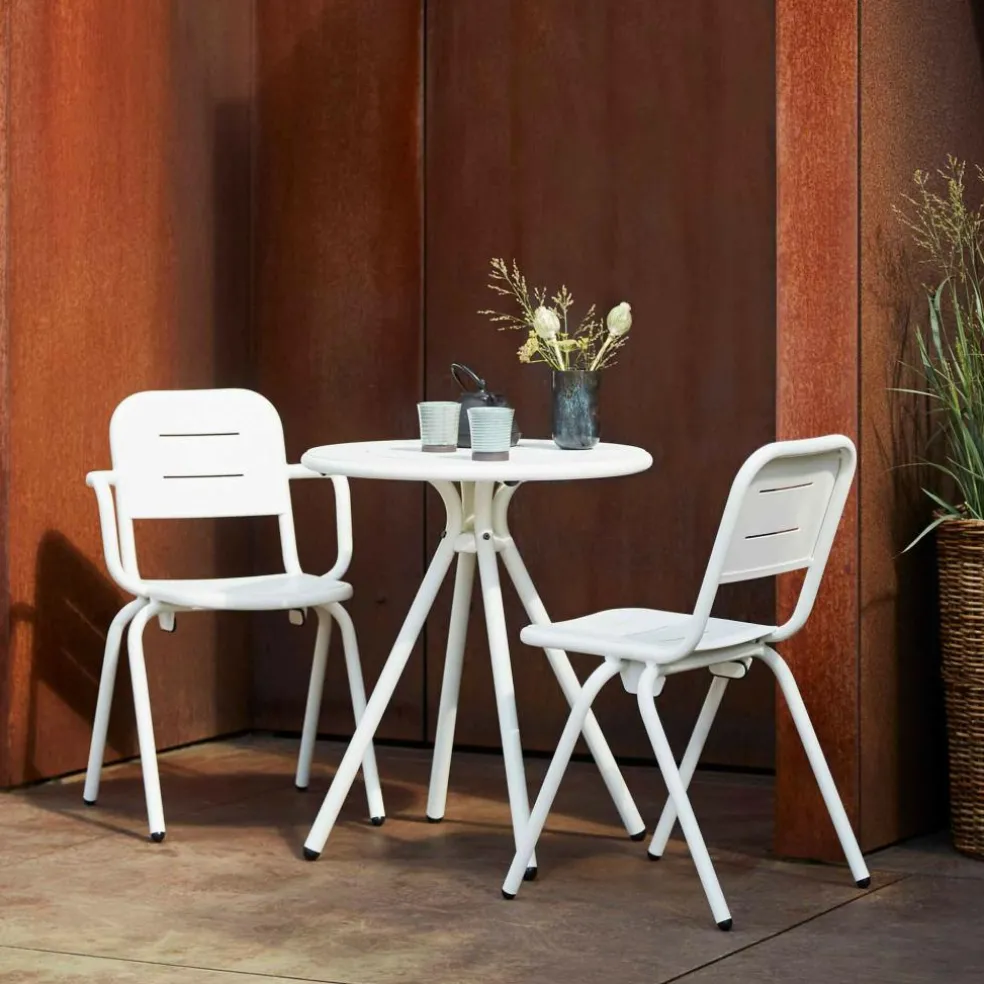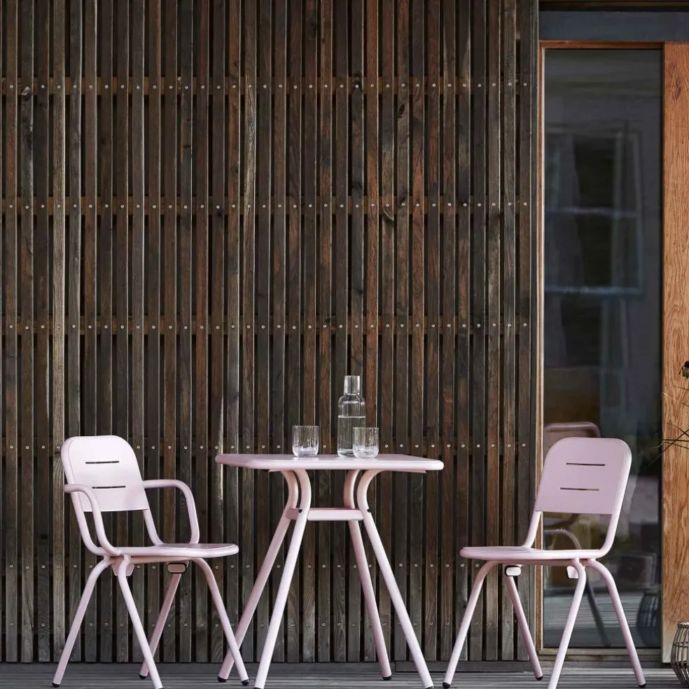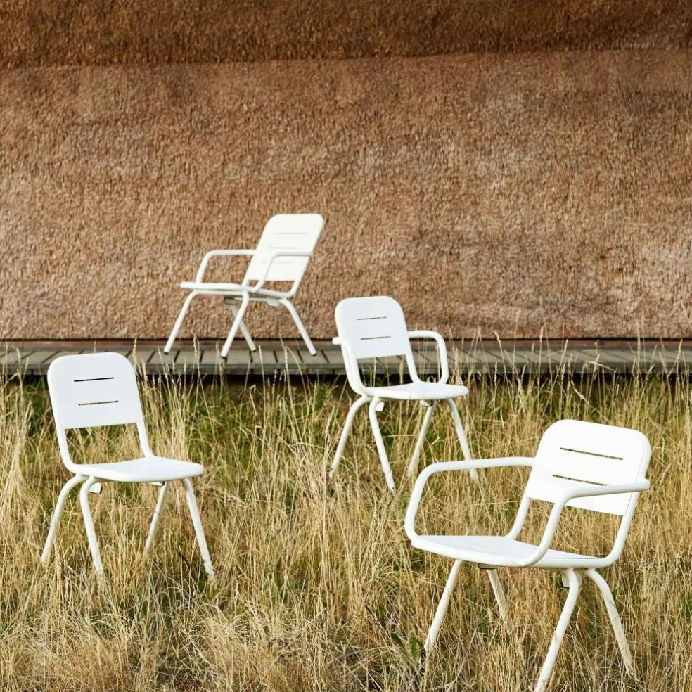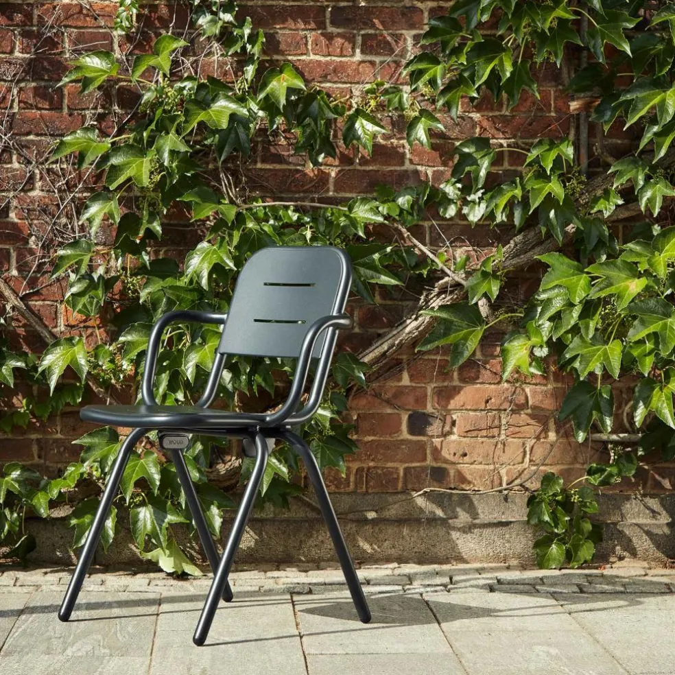 Der Ray Gartenarmlehnstuhl wurde von Henrik Rolff und Rasmus Fasting für die Marke Woud entworfen. Er gehört zu einer umfangreichen Serie an Outdoormöbeln, die insgesamt 12 Entwürfe umfasst. Die schlichte Linienführung ist ein Markenzeichen der Kollektion, die sich für den Garten, den Balkon oder die Terrasse ideal eignet.