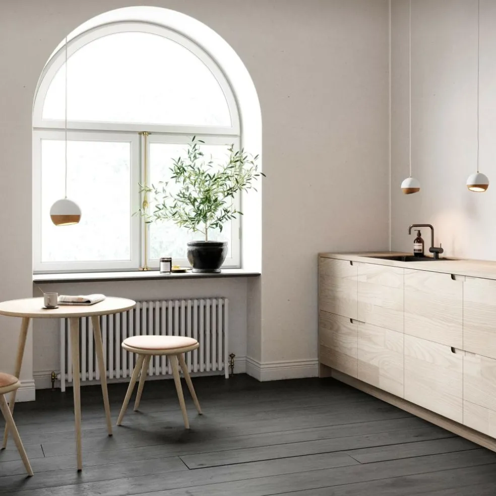Die anmutige Ray Pendelleuchte wurde vom Pederjessen design studio für die Marke Mater entworfen. Sie zeigt sich in einer spannenden Kombination aus natürlichem Holz und einem Gehäuse aus Metall, das an typisches Industriedesign denken lässt. Die makellose Kugelform des Lampenschirms setzt dem Gesamtbild die Krone auf.