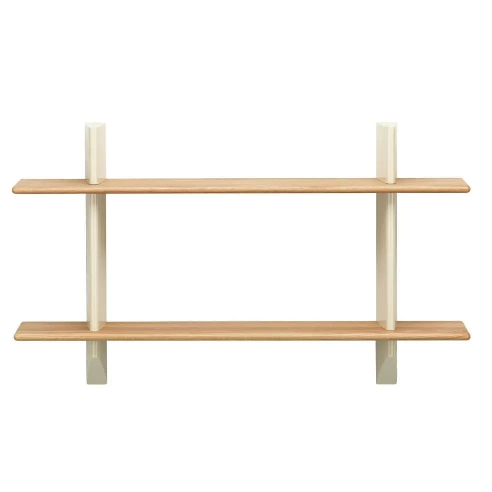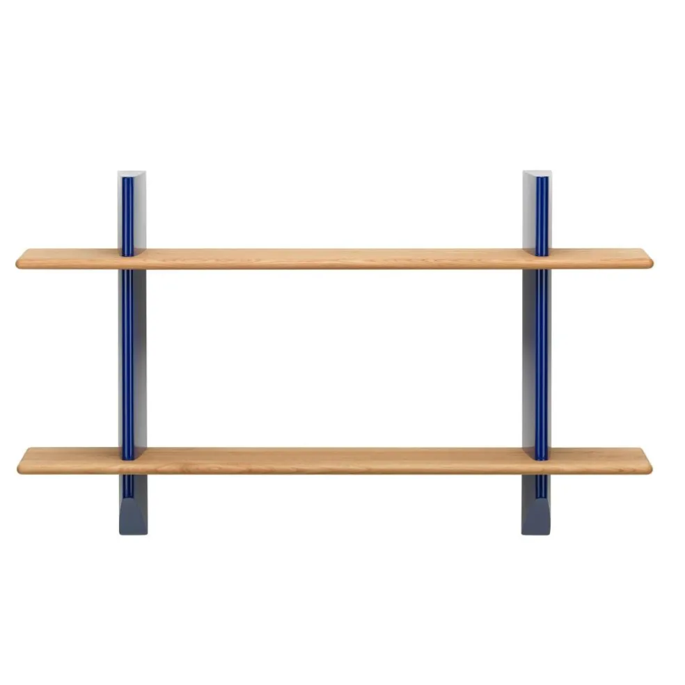 Zwei horizontale Platten als Regalböden, zwei vertikale Elemente als Wandhalterung: Damit ist das Rayonnage Wandregal platzsparend, praktisch und schafft darüber hinaus eine dekorative Gliederung der Wand. Dabei besticht das Wandregal nicht nur mit seiner einfachen Konstruktion. Die Wandelemente sind aus gebogenem Stahlblech gefertigt, das dank seiner abgerundeten Vorderseite und der schrägen Unterkante an einen Flugzeugflügel oder ein Schiffsruder erinnert – eine typische Form in Prouvés Entwürfen. Präzise gearbeitete Einschübe für die Regalböden versprechen eine hohe Stabilität. Je nach gewählter Ausführung schaffen die lackierten Elemente einen knalligen Farbtupfer an der Wand oder treten dezent in den Hintergrund. Die gebeizten und geölten Holzböden aus massiver Eiche erzeugen mit ihrer zarten Maserung eine natürliche Wirkung. So ist das Rayonnage Wandregal in jedem Wohnraum einsetzbar und passt ebenso gut ins Büro, in einen Laden oder in ein Lokal.