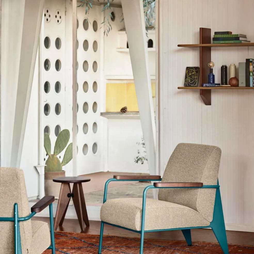 Das Rayonnage Wandregal wurde von Jean Prouvé für die Marke Vitra entworfen. Das Design mit seinen gekreuzten Elementen, die einfach an der Wand befestigt werden, ist ein Klassiker aus dem Jahr 1936, der erstmals in der École Nationale Professionnelle in Metz Verwendung fand.