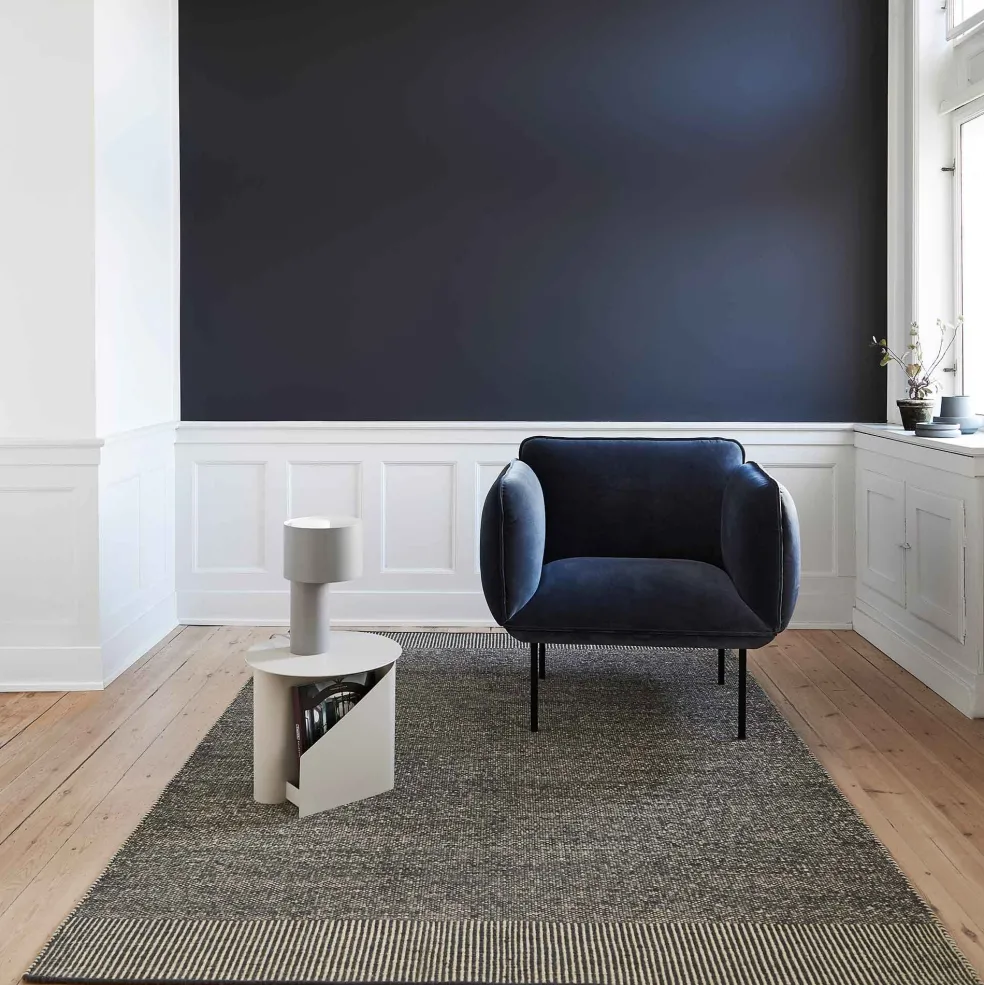 Der Rombo Teppich 240x170cm wurde vom Studio MLR für die Marke Woud entworfen. Er gehört zu einer Serie an Teppichen, die es in unterschiedlichen Größen gibt. Sie verbreiten in jedem Raum wohnliche Atmosphäre. Gerne wird der Teppich im Wohn- oder Esszimmer verwendet. Doch auch in Büros wird er gerne eingesetzt.