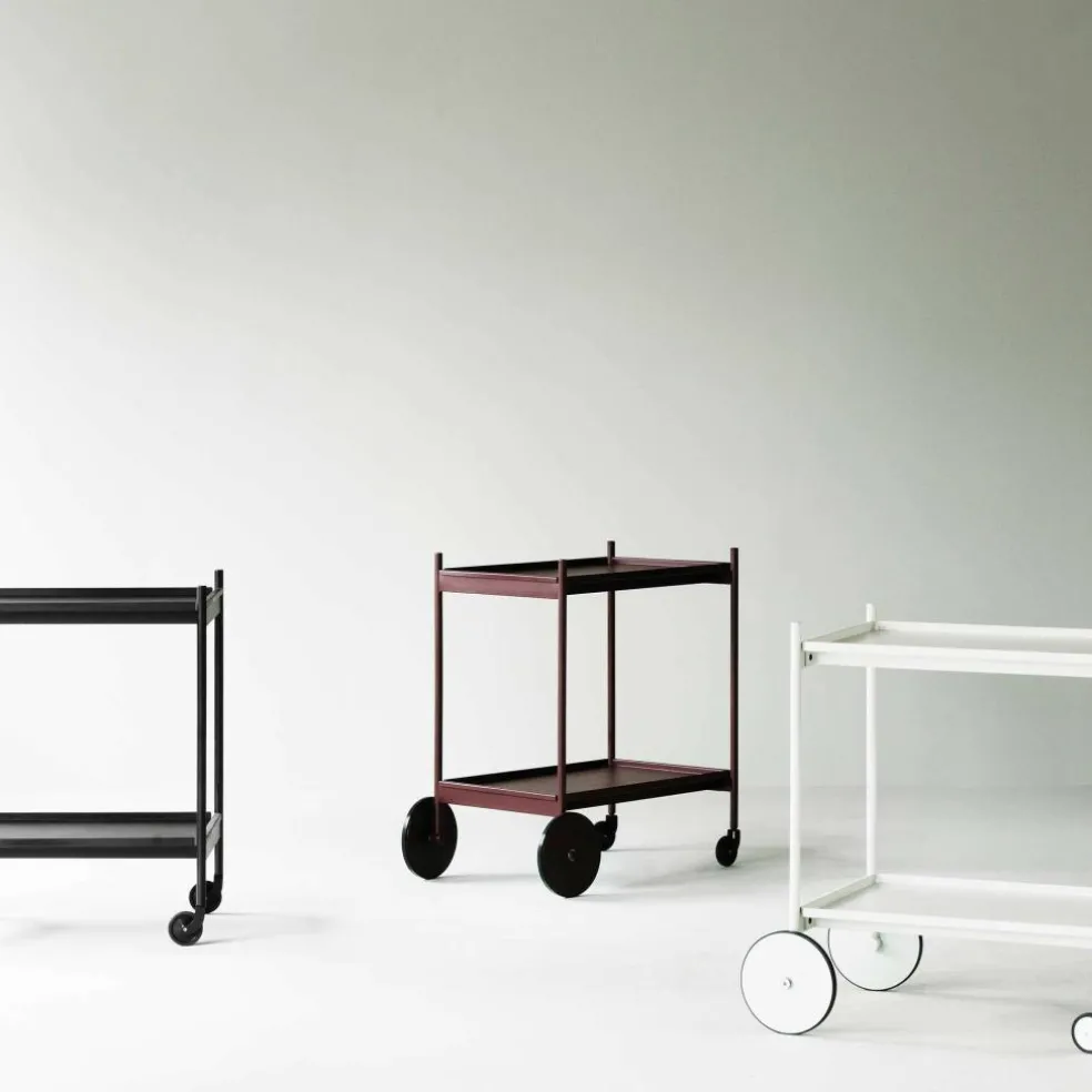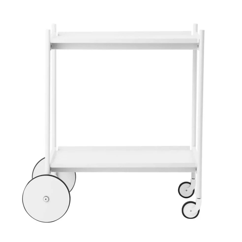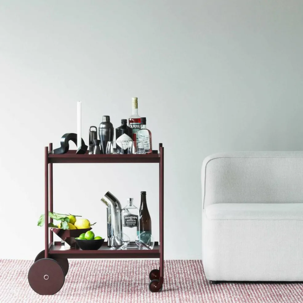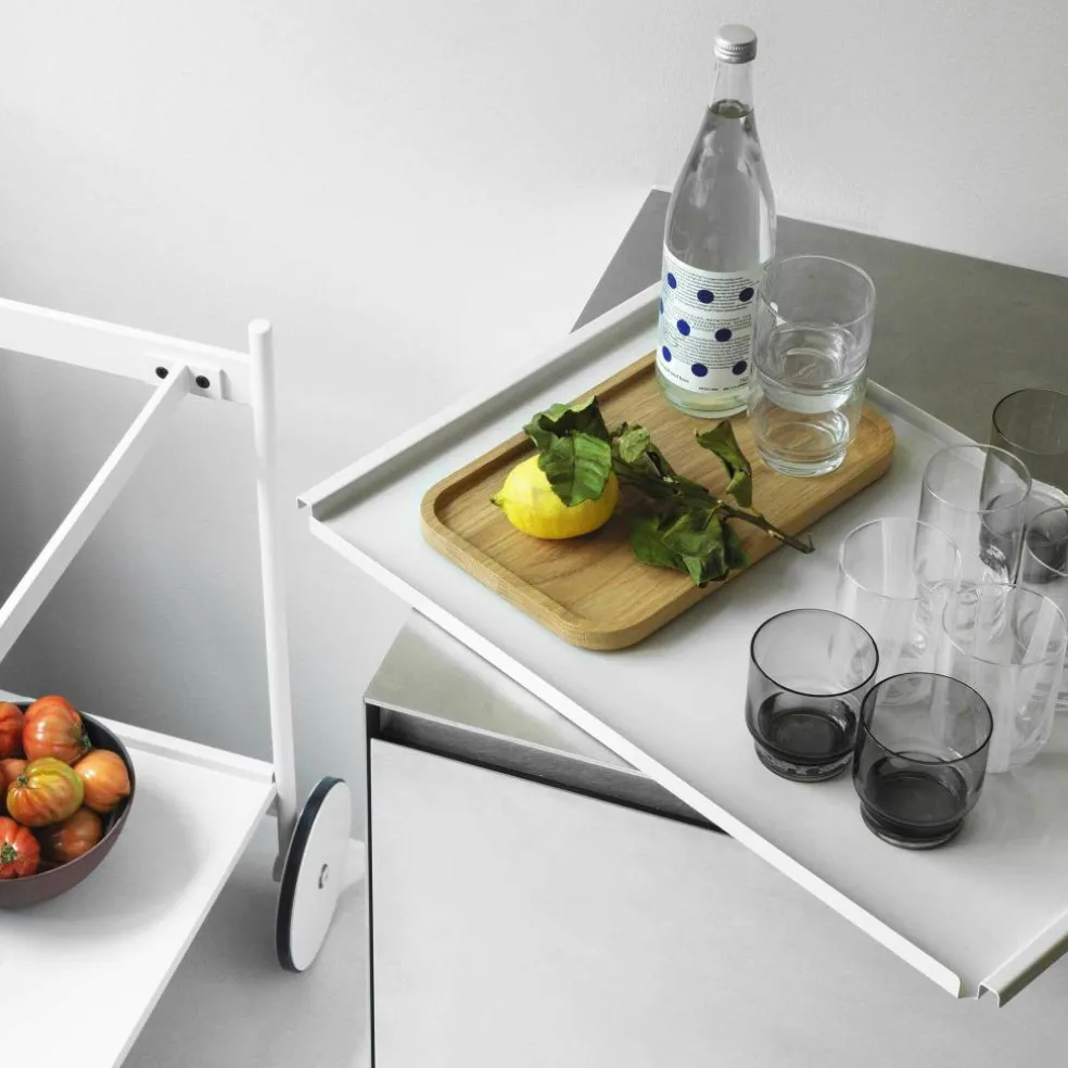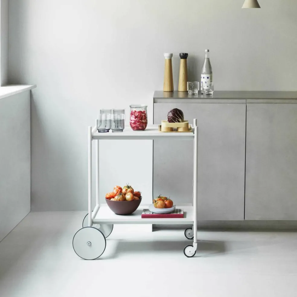 Der Rul Servierwagen von Normann Copenhagen ist ein nützliches wie schönes Möbel für den Innen- und Außenbereich. Entworfen wurde er von Simon Legald.