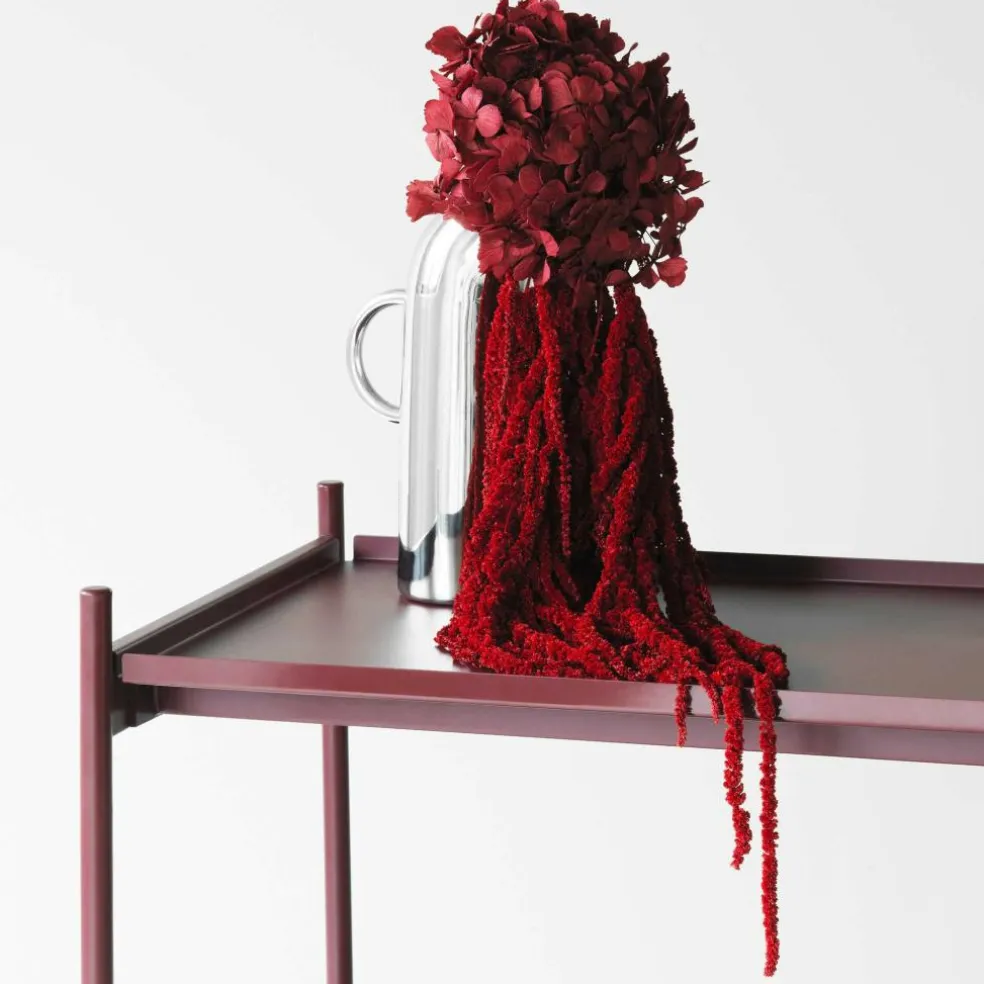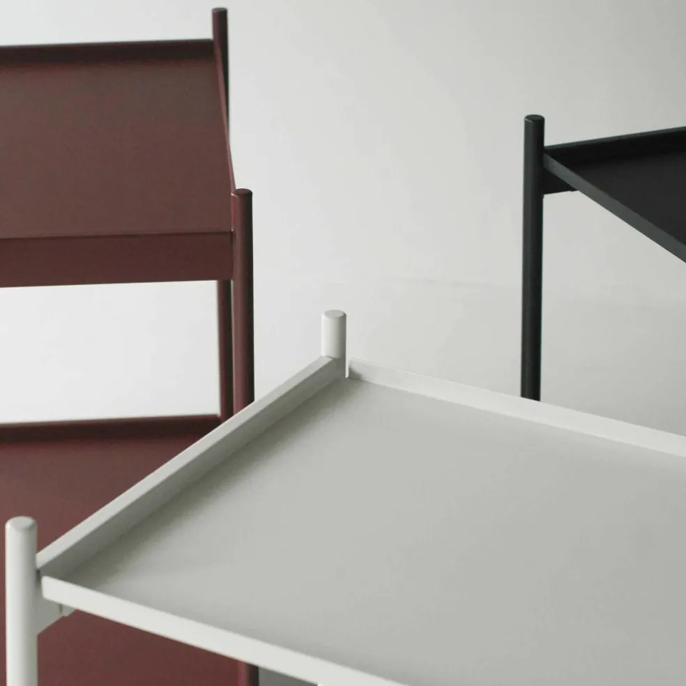 Der schlichte rechteckige Rul Servierwagen ist immer zur Stelle, wenn man ihn braucht. Auf ihm findet beispielsweise die Hausbar ihren Platz oder man nutzt den Wagen, um auf ihm Schüsseln und andere Behältnisse zu platzieren beim nächsten Abendessen mit Freunden und Familie – so bleibt mehr Platz auf dem Esstisch. Praktischerweise sind die beiden Tabletts des Servierwagens abnehmbar, was seine hohe Funktionalität noch einmal mehr unterstreicht. Dies ist insbesondere auch praktisch für eine einfache Reinigung mit einem feuchten Tuch. Zwei große Räder sorgen für die nötige Stabilität, während zwei kleinere, um 360 Grad drehbare Räder eine maximale Flexibilität bringen. Der Rul Servierwagen ist aus pulverbeschichtetem Stahl und damit auch für den Einsatz im überdachten Außenbereichen geeignet. Der minimalistische Trolley kann maximal 10 kg pro Tablett tragen. Seine rund geformten Außenstangen und die kantigen Tabletts aus pulverbeschichtetem Stahl verleihen dem Servierwagen einen besonders formschönen Ausdruck, der von den verschieden großen Rädern noch intensiviert wird. Flach verpackt geliefert, muss der Rul Servierwagen zusammengebaut werden, die dafür benötigte Montageanleitung liegt bei.