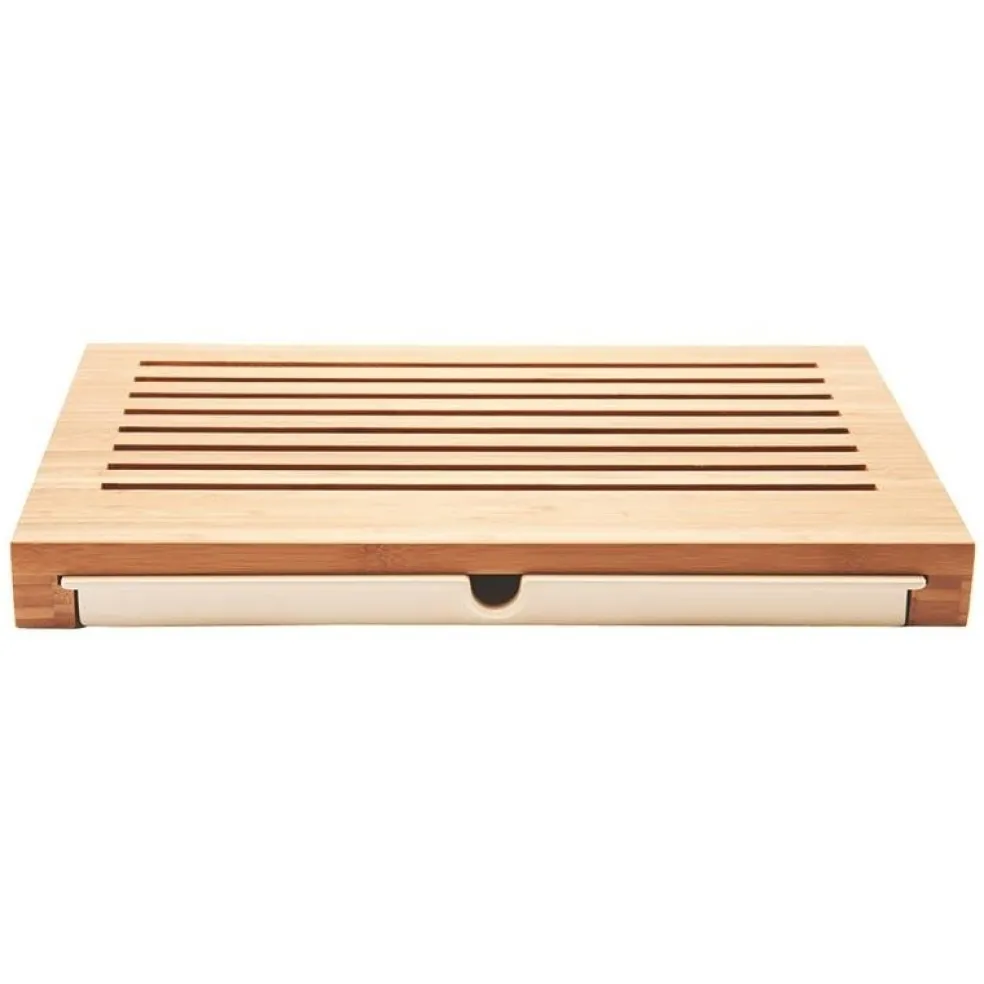 Auf der Unterseite des Sbriciola Schneidebretts befindet sich ein praktischer Schieber aus Kunststoff, mit dem Schneidabfälle mit wenig Aufwand entfernt werden. Die Reinigung des Sbriciola Schneidebretts von Alessi ist mithin besonders einfach. Überdies hat man auf einer Länge von 42 und einer Breite von 27 cm genügend Platz zum Schneiden.