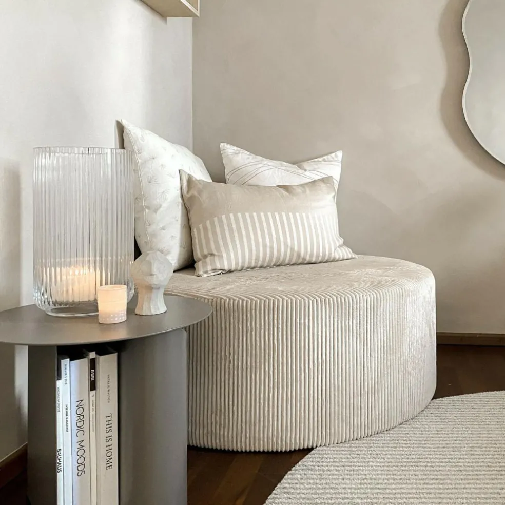 Der Sentrum Beistelltisch ist 10,5 kg schwer und 36 cm hoch. Die Tischplatte hat einen Durchmesser von 40 cm. Die Ablageflächen sind 27,7 cm lang und 10,6 cm breit.