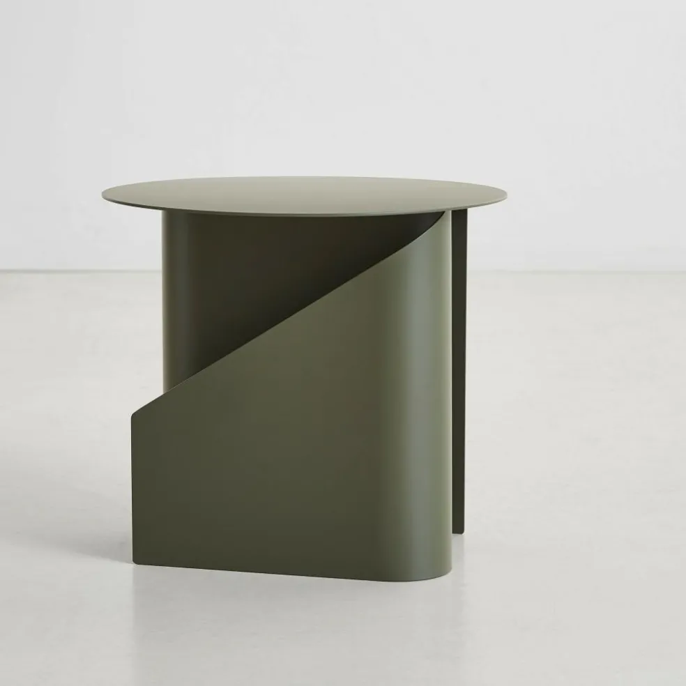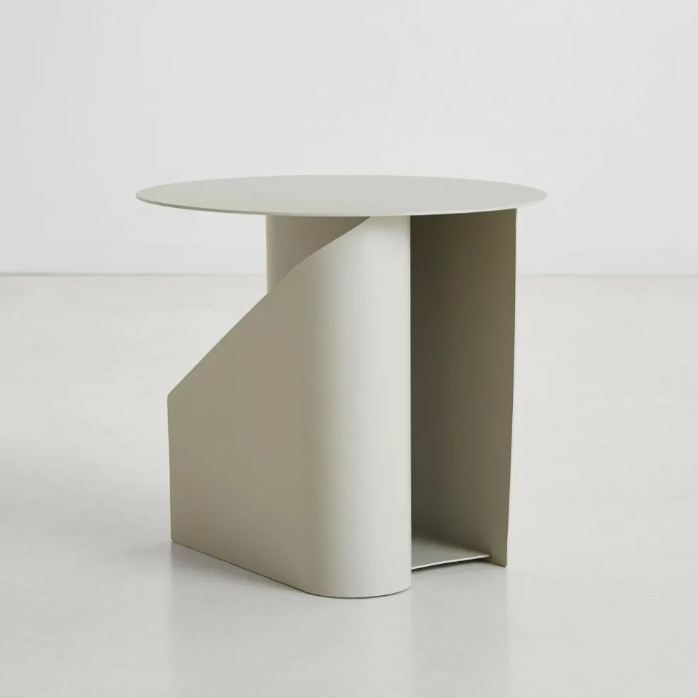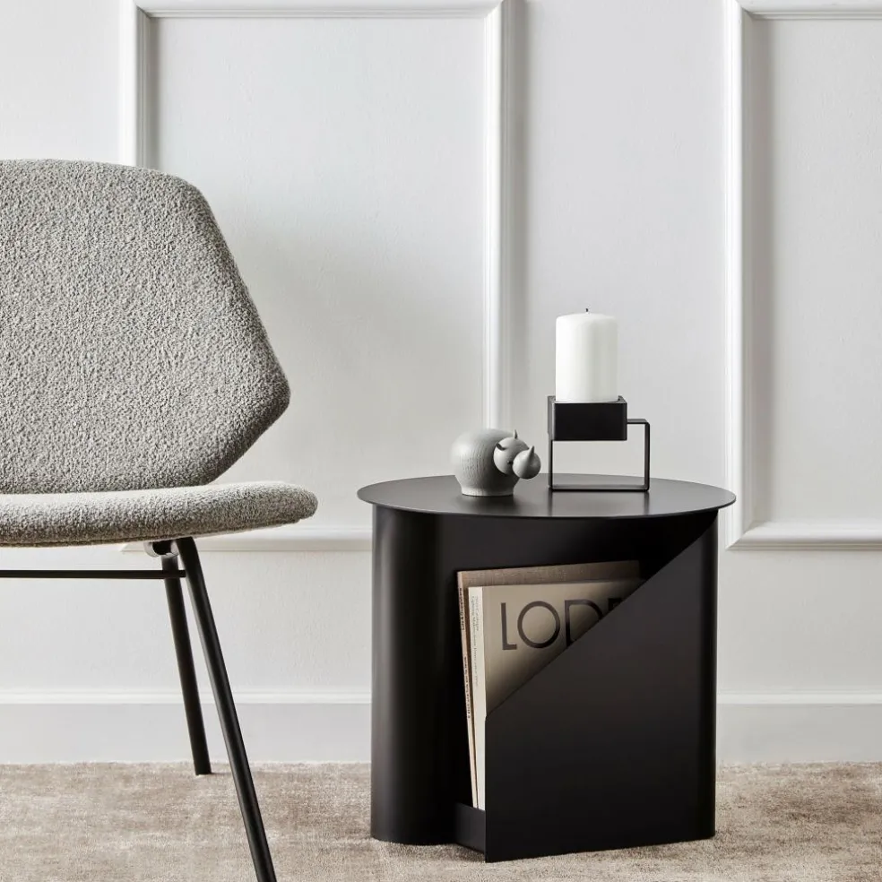 Der Sentrum Beistelltisch wurde von Maximilan Schmahl und Fabian Schnippering für die Marke Woud entworfen. Bei dem Entwurf wird auf den ersten Blick deutlich, dass die beiden an der Bauhaus-Universität in Weimar studierten. Ganz nach der weltberühmten Schule reduzierten die beiden auch beim Sentrum Beistelltisch das Design auf das Wesentliche. So reduziert sich der Entwurf auf bekannte geometrische Formen wie den Kreis, die Diagonale und das Trapez.