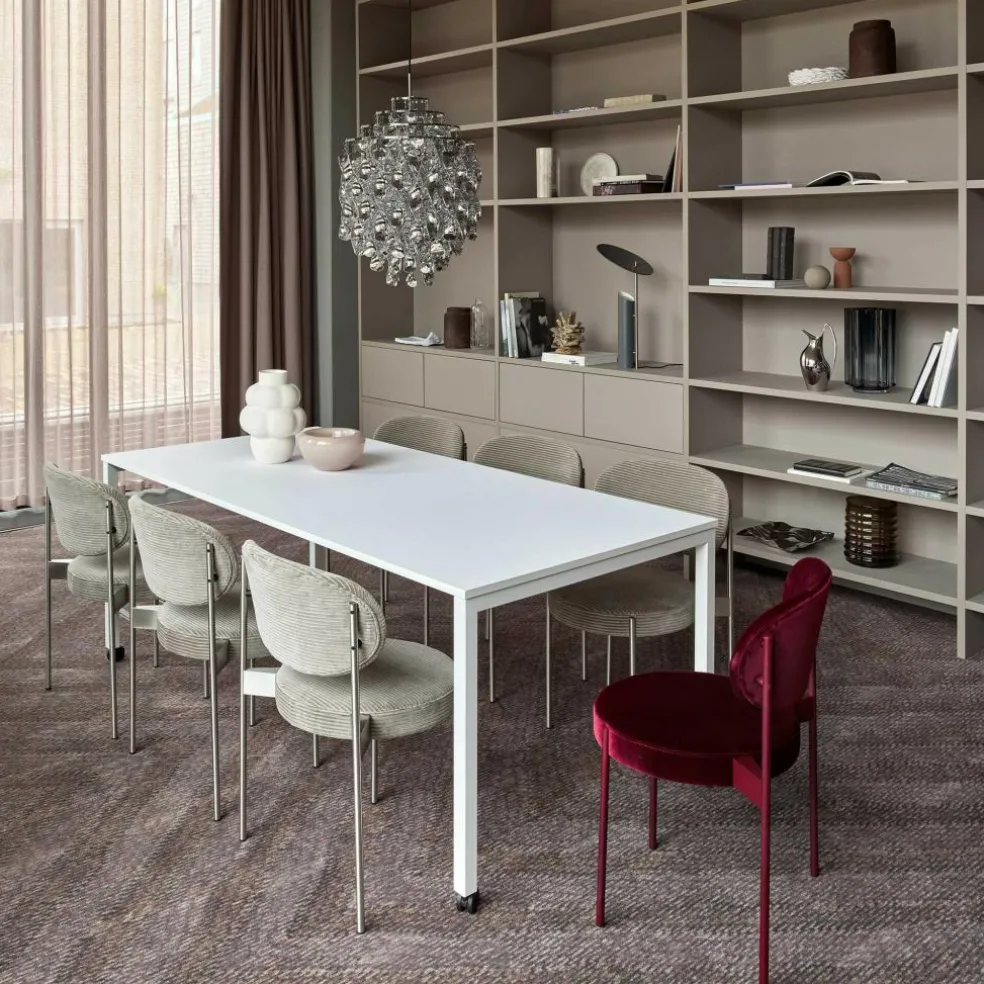 Der Series 430 Stuhl Gestell Stahl wurde von Verner Panton für die Marke Verpan entworfen. Er gehört zu einer umfangreichen Kollektion des dänischen Stardesigners. Aus der Serie sind auch Tische erhältlich.