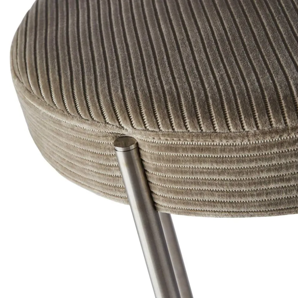 Der Series 430 Stuhl Gestell Stahl unterscheidet sich deutlich von den anderen Entwürfen Verpans, der als Vorreiter von Pop-Art-Möbeln gilt. Er verwendet ein scheinbar filigranes Gestell aus Stahlrohr. Die vier Sesselbeine sind an der Außenkante der Sitzfläche angebracht und somit deutlich sichtbar. Einen ansprechenden Kontrast zum nüchternen Metall bildet die Sitzfläche: Sie ist rund geformt und mit CMHR-Schaum weich gepolstert. Die Rückenlehne beschreibt ein gewölbtes Oval. Beide Elemente sind mit hochwertigem Stoff bespannt. Er stammt aus der dänischen Textilmanufaktur Kvadrat. Mit seinem schlichten skandinavischen Entwurf passt der Series 430 Stuhl Gestell Stahl in jedes Wohn- und Esszimmer. Das in verschiedenen Farben erhältlich Modell ist stapelbar und wird daher gerne im Eventbereich und in Büros eingesetzt.