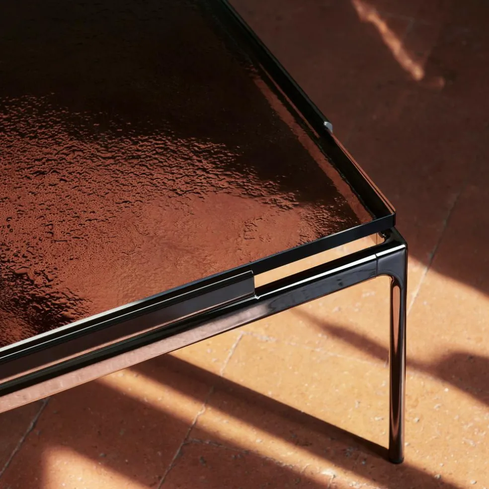 Schon die Gestalt dieses Designtisches erweckt Assoziationen mit einem Schmuckstück. Die quadratische Tischplatte ist in eine polierte Fassung gesetzt und lässt an ein wertvolles Juwel denken. Sie besteht je nach gewählter Variante aus Marmor oder aus Glas. In jedem Fall ist der Sett LN13 Kaffeetisch ein Unikat dank der natürlichen Zeichnung seines Steins oder aufgrund der im Gussverfahren gefertigten und grob strukturierten Glasoberfläche. In Schienen aus stranggepresstem Aluminium verankert und auf schlanke Beine aus gegossenem Aluminium gesetzt, erhält die eindrucksvolle Fläche den passenden Rahmen. Dabei unterstreicht die glänzend verchromte Oberfläche der Metallkonstruktion den edlen Charakter. Der Sett LN13 Kaffeetisch ist ein skulpturaler Hingucker, der sich in einem modernen Raum ebenso gut macht wie in gediegenem Ambiente. Er passt in einen Empfangsbereich im Büro, in den Warteraum einer Praxis oder in die Hotellobby sowie ins private Wohnzimmer.