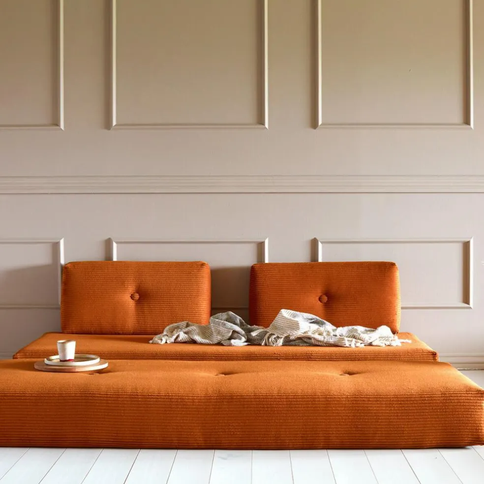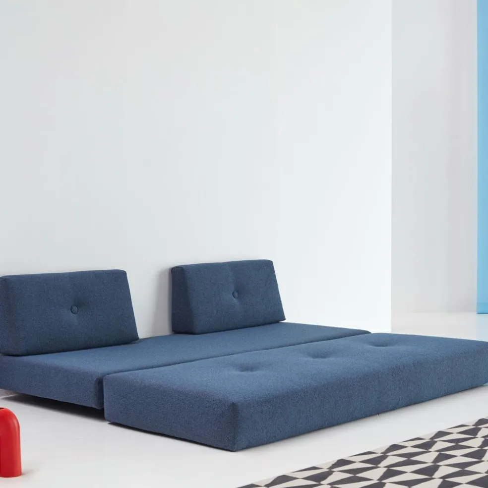 Das Schlafsofa besteht aus zwei Matratzen, die lose übereinandergestapelt und nicht miteinander vernäht sind. Somit haben Sie die Möglichkeit, diese nebeneinanderzulegen und auf diese Weise eine größere Liegefläche zu kreieren. Dieser unaufwendige Umbau nimmt nur wenig Zeit in Anspruch. Die zwei im Lieferumfang enthaltenen Keilkissen sind auf der Rückseite mit einer Anti- Rutsch Fläche versehen und können je nach Bedarf als Rückenlehne oder als seitliche Armauflage verwendet werden. Die mit einem hochwertigen und strapazierfähigen Stoff bezogene Polsterung des Sigmund Indu Schlafsofa 200x84cm besteht aus dem patentierten Icomfort-Taschenfederkern. Dieser sorgt für einen mittelfesten Sitz und ist somit hervorragend zum Schlafen geeignet. Die Abmessungen des Schlafsofas betragen in der Breite 200 cm bei einer Tiefe von 84 cm. Die Sitzhöhe der zwei aufeinanderliegenden Matratzen beträgt bequeme 44 cm. Das Sofa kann in zwei getrennten Liegeflächen mit den jeweiligen Abmessungen von 80 cm x 200 cm oder einer Gesamtliegefläche von 160 cm x 200 cm aufgebaut werden.