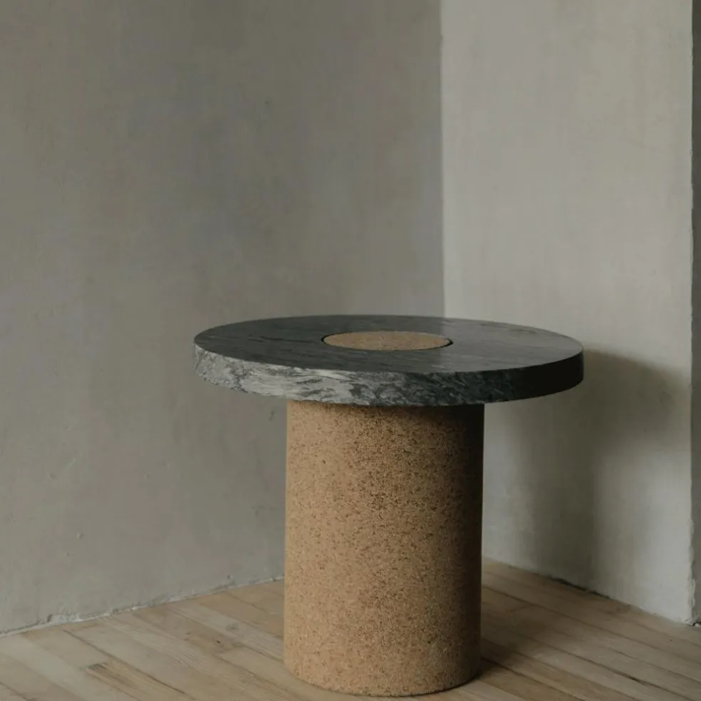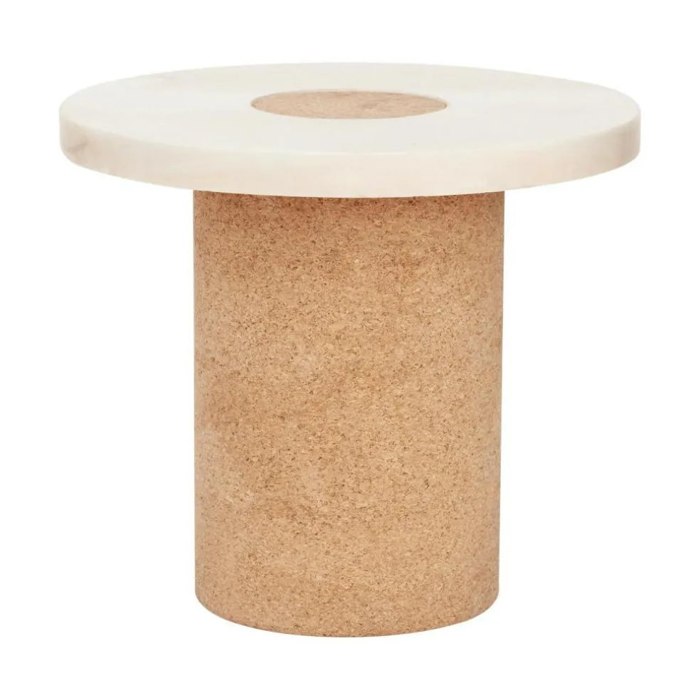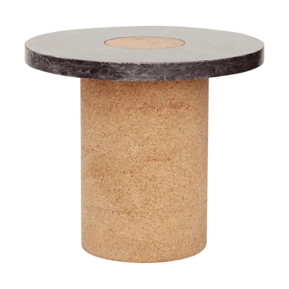Der Sintra S Beistelltisch wird aus erlesenen Rohstoffen hergestellt. Der runde Fuß besteht aus Kork, einem weichen und beständigen Material. Außerdem gilt Kork als besonders leichter Werkstoff. Einen spannenden Kontrast dazu bildet die Tischplatte. Sie ist aus edlem Marmor gefertigt. Da der Sintra S Beistelltisch ausschließlich aus Naturmaterialien gefertigt sind, entsteht wohnliches Ambiente in jedem Raum. Sowohl Marmor als auch Kork weist feine Maserungen auf, die jedes Modell zu einem Unikat machen. Beim Design beschränkt sich Hansen auf das Wesentliche. Der Tischfuß ist ein massiver Zylinder, darauf sitzt die runde Tischplatte, die von einem Kreis mittig durchbrochen ist. Somit ist auch an der Tischoberseite Kork zu sehen.