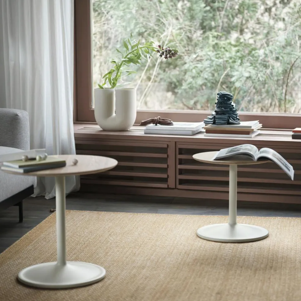 Der Soft Beistelltisch H 48cm Ø 41cm ist 48 cm hoch. Der Durchmesser beträgt 41 cm. Somit ist das Modell auch für kleine Räume geeignet. Der Tisch ist 7,73 kg schwer. Aus derselben Serie sind auch höhere und größere Tische erhältlich.