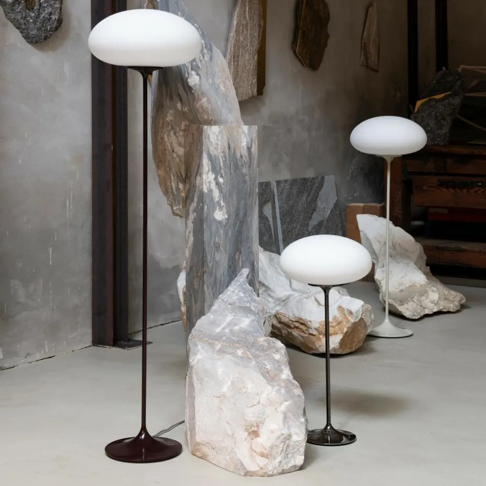 Die Stemlite Tischleuchte H 70cm wurde von Bill Curry für die Marke Gubi entworfen. Entstanden ist das außergewöhnliche Modell im Jahr 1962, drei Jahre später kürte das Industrial Design Magazine das Modell zur einflussreichsten Leuchte des Jahres. Kein Wunder, denn Curry setzte eine damals neue Technologie ein: Der Sockel und der Fuß wurden aus einem Guss gefertigt.