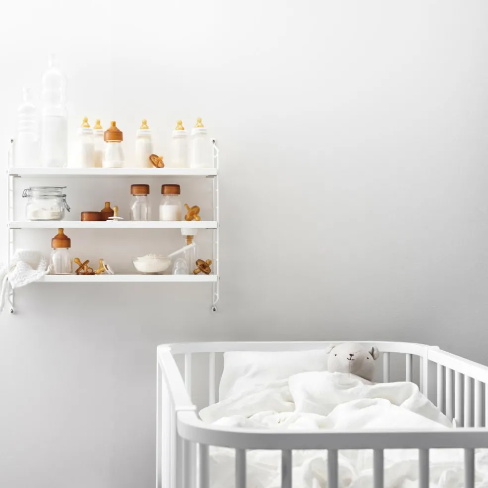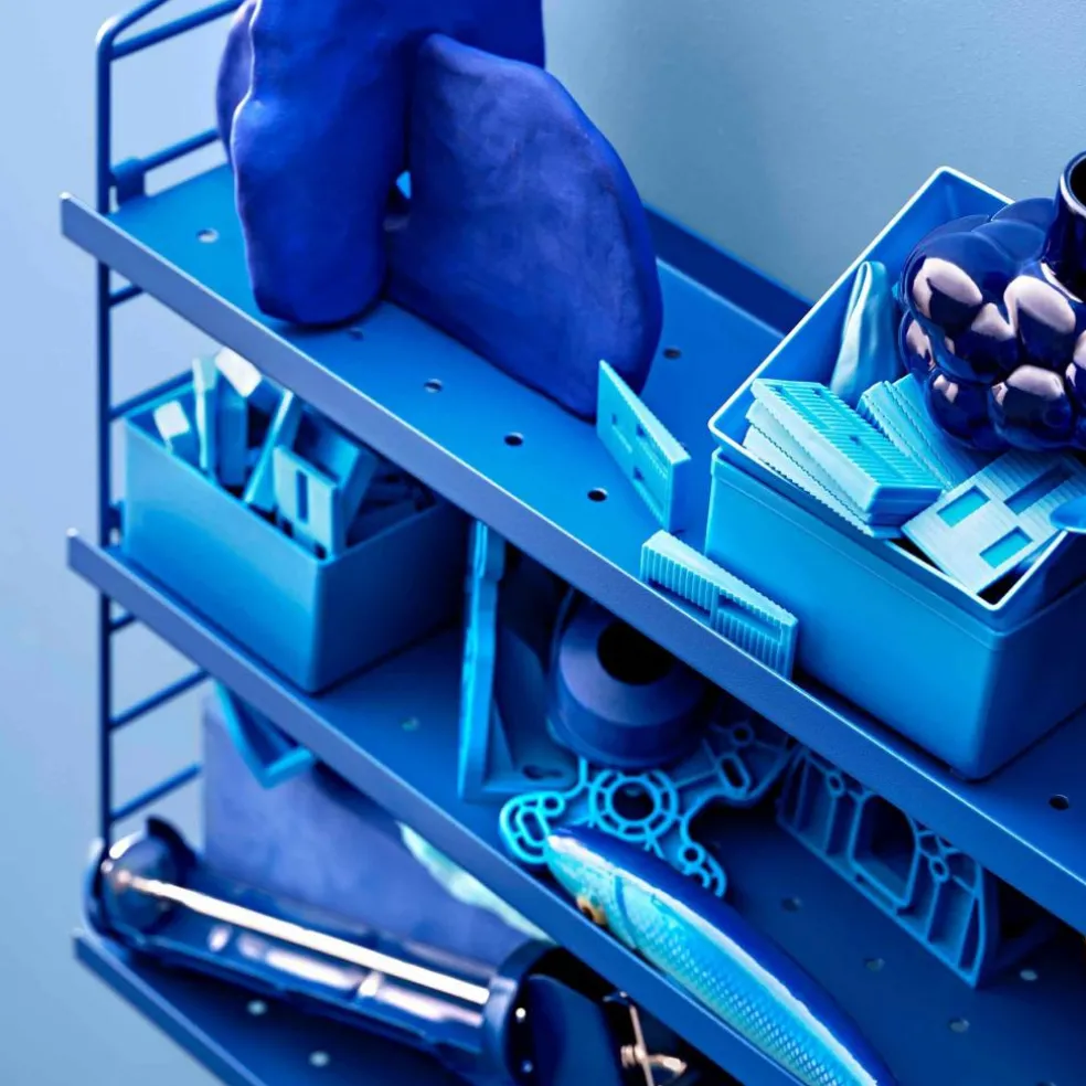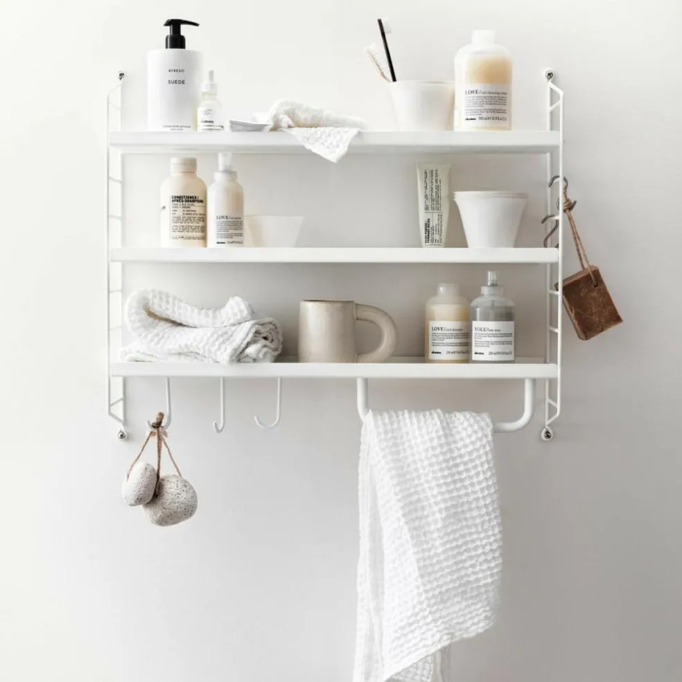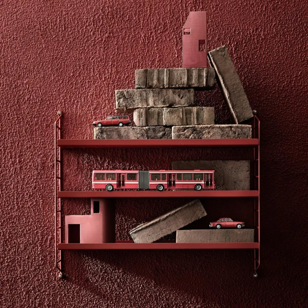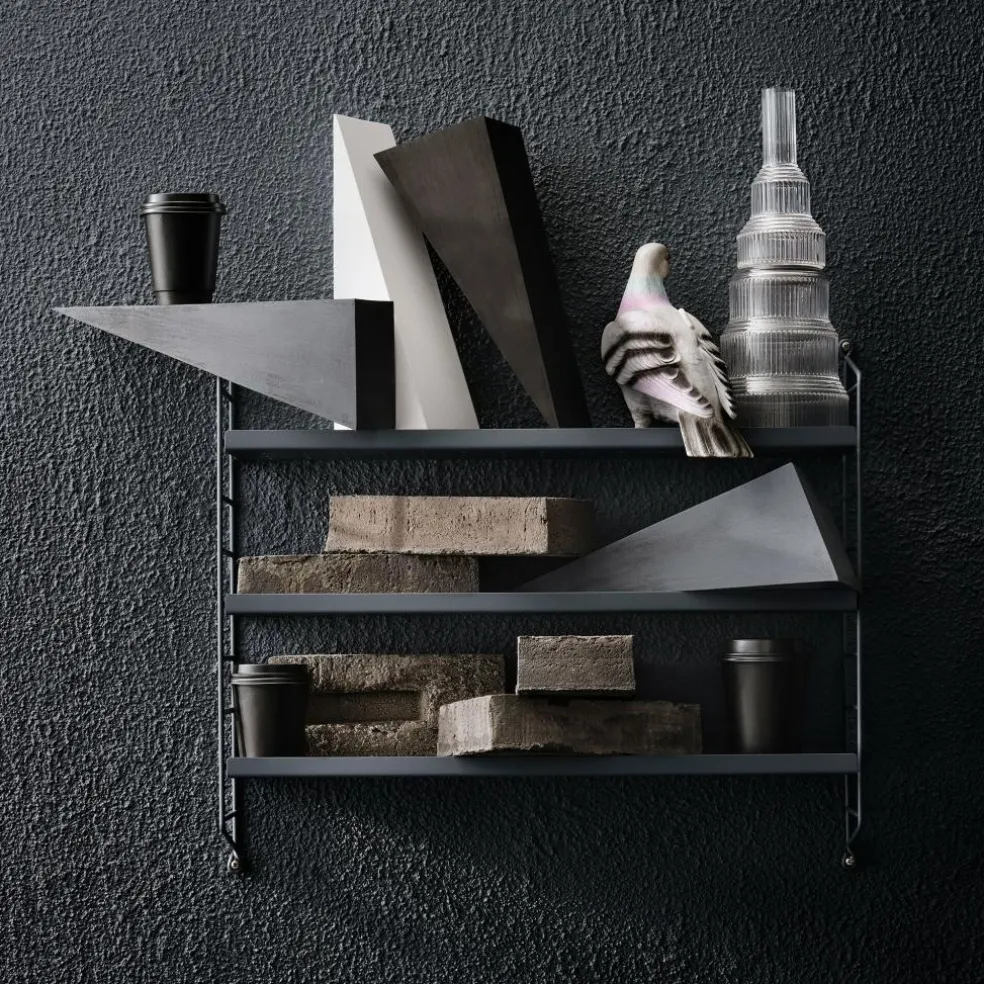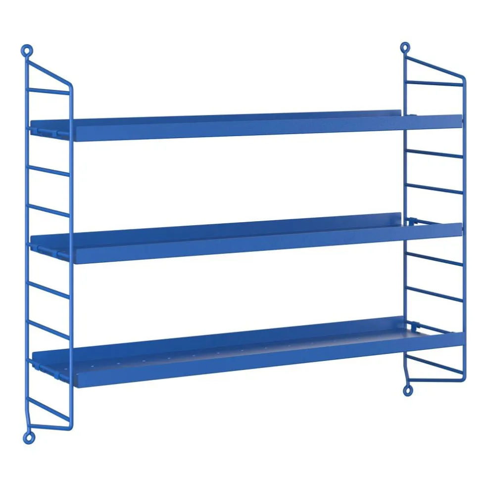 Das String Pocket Metall Regal 60x50x15cm ist 5,5 kg schwer. Die Breite beträgt 60 cm. Das Modell ist 50 cm hoch und 15 cm tief. Aus derselben Serie sind auch Regale in anderen Formaten zu haben.