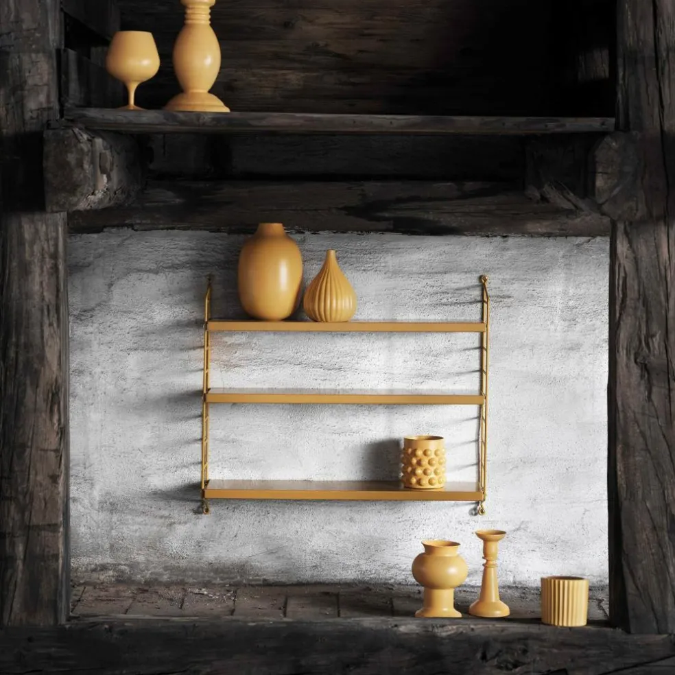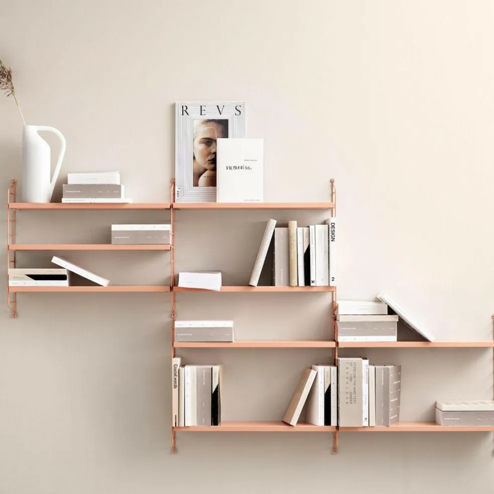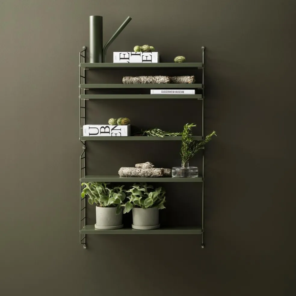 Das String Pocket Regal 60x50x15cm hat eine Höhe von 60 cm. Die Breite beträgt 50 cm und die Tiefe 15 cm. Aus derselben farbenfrohen Kollektion sind auch Regale in anderen Größen zu haben. Man kann sie ideal miteinander kombinieren.