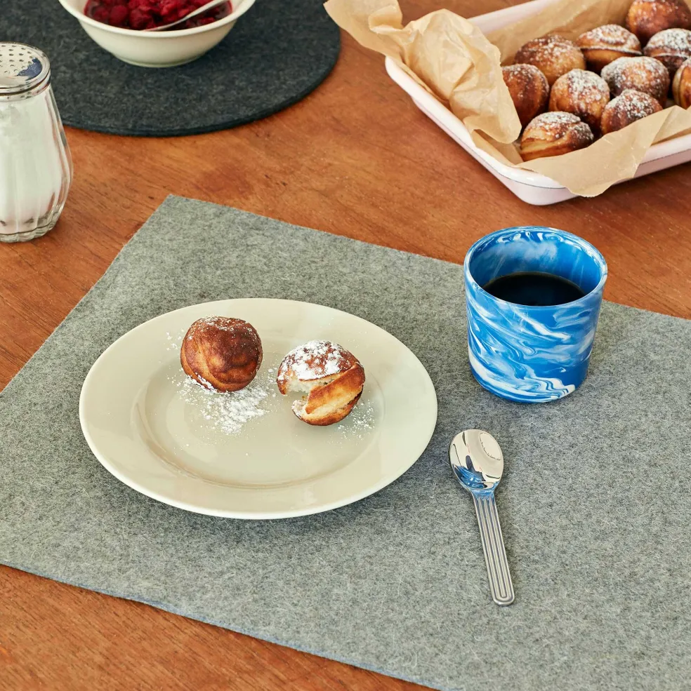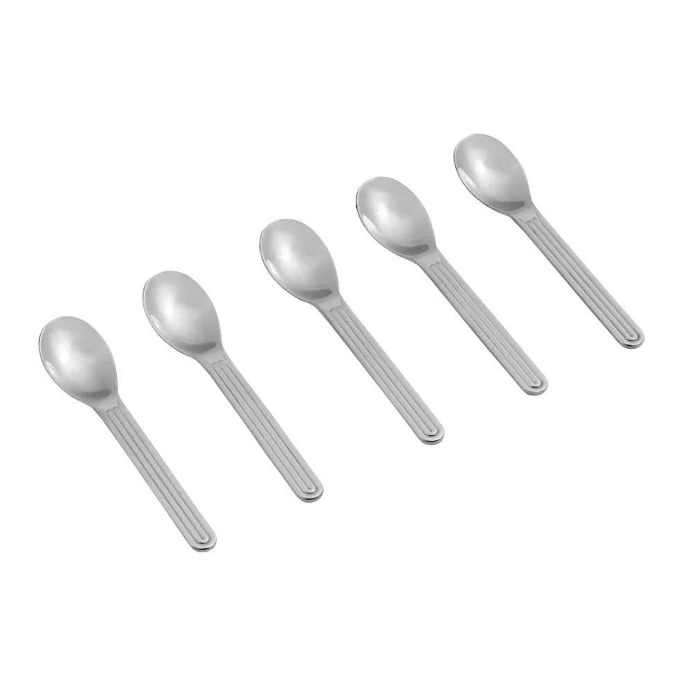 Außerdem überzeugt beim HAY Sunday Besteck 5er-Set die ergonomische Führung. Das Besteck liegt durch seine flache und geriffelte Oberfläche und seine weichen Rundungen gut in der Hand und lässt sich leicht zum Mund führen. Es ist garantiert rostfrei, pflegeleicht und auch für die Spülmaschine gut geeignet. Das Besteck verbreitet besonders nach einer Politur feinsten Glanz und ist so haltbar, dass es garantiert über Generationen weitergegeben werden kann. Ob Teelöffel, Esslöffel, Messer oder Gabel – mit dem Sunday-Besteck können Sie eine festliche Tafel eindecken. Zum Sonntagsessen oder zu einem Festschmaus aus anderem Anlass leistet das edle Besteck von HAY Ihnen gute Dienste und trägt zu einer gelungenen und geschmackvollen Feier bei.