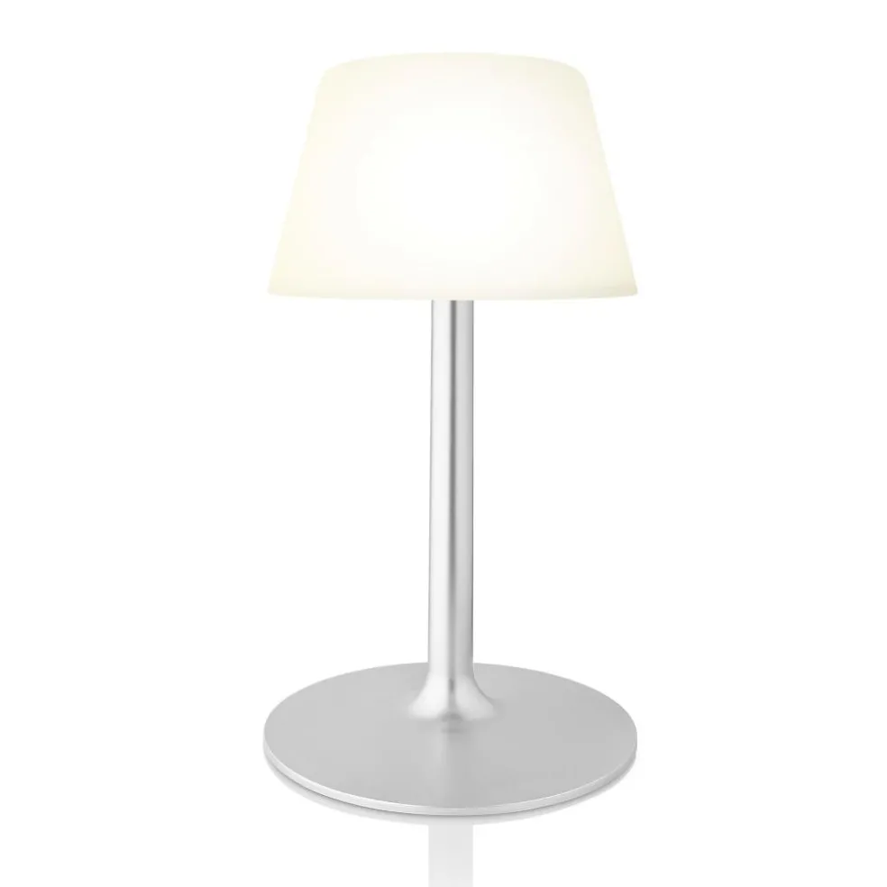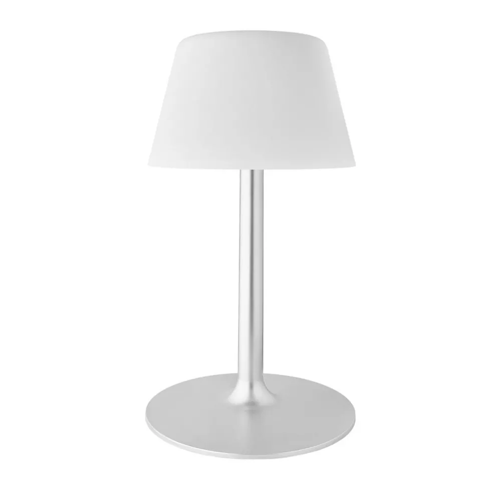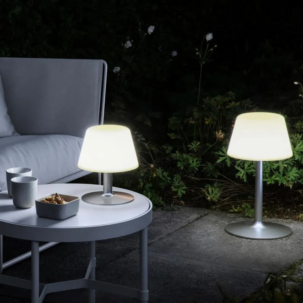 100% solarbetriebenes Licht, das bei Dämmerung automatisch angeht und drei Lichtstärken bietet: mit diesen Eigenschaften punktet die SunLight Lounge Solar-Tischleuchte. Ihr weißer Kunststoffschirm wirft einen weichen Lichtkegel nach unten und gibt nach oben hin ein blendfreies, angenehm diffuses Licht ab. Dank ihres matt glänzenden Metallfußes steht sie nicht nur stabil da, sondern fügt sich auch gut in ihre Umgebung ein. Ihre große Stärke ist Flexibilität, denn da die SunLight Lounge Solar-Tischleuchte ohne Kabel auskommt, eignet sie sich nicht nur für den Einsatz mitten im Garten, sondern auch fürs Picknick im Grünen.