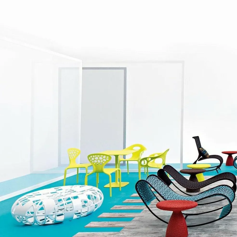 Der Supernatural Stuhl mit Löchern wurde von Ross Lovegrove für den Hersteller Moroso Outdoor entworfen. Bei diesem Modell bediente sich das italienische Möbelhaus erstmals einer mit Glasfaser verstärkten Spritzgusstechnologie – was das pfiffige Design des außergewöhnlichen Stuhls technisch optimal umsetzt. Der Designer sagt zur Entwicklung seines Prunkstücks Folgendes: „Das Lochmuster verleiht dem Stuhl eine vielschichtige und durchaus witzige Wirkung, wenn Licht durchgeht und Schatten erzeugt, die den Raum bereichern und unerwartete, attraktive Muster auf architektonische Flächen zaubern.“