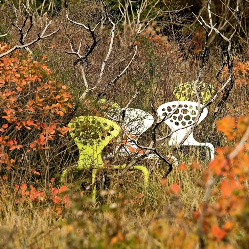 Dieses außergewöhnliche Sitzmöbel ist nicht nur ein Hingucker im Innen-, sondern auch im Außenbereich. Der Supernatural Stuhl mit Löchern reiht sich damit nahtlos in die vielfältige Kollektion Moroso Outdoor ein. Seine Konstruktion aus Polypropylen und Glasfaser macht ihn robust, aber dennoch bequem, denn die Beine aus dünnem Kunststoff schwingen im Sitzen bei Bewegungen leicht mit.
