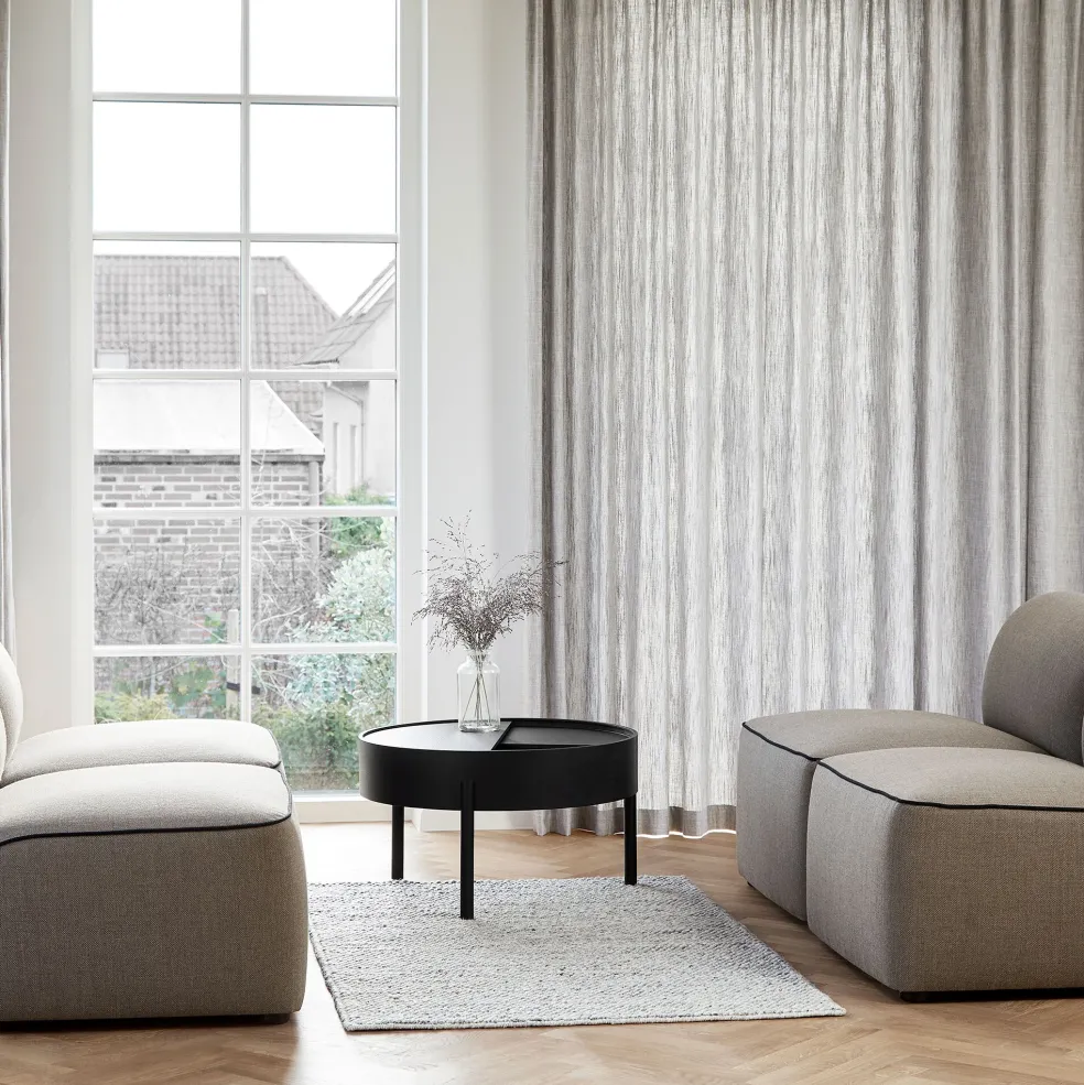 Der Tact Teppich 140x90cm wurde von Shazeen Ansari für die Marke Woud entworfen. Er gehört einer Serie von modernen Teppichen an, die nach indischer Tradition von Hand gewebt sind und mit ihrer präzisen Verarbeitung bestechen. Dank ihrer zweifarbigen Strukturmuster lassen sich die Tact-Modelle harmonisch in ihre Umgebung einfügen.