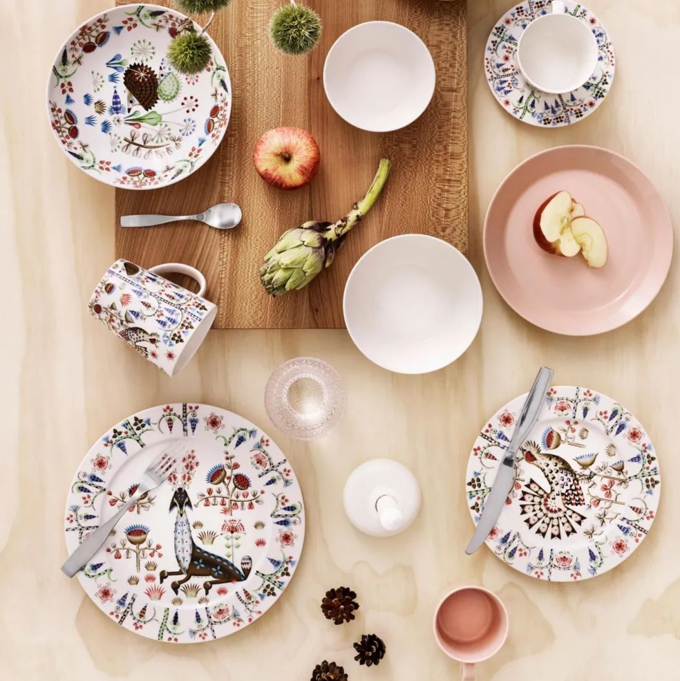 Das Taika Porzellan Gedeck ist seit jeher schon ein international anerkannter Klassiker für Tisch & Tafel! Das Design der Taika Geschirrserie erinnert zum einen an die traditionellen finnischen Muster, zum anderen ließ sich Klaus Haapaniemi vom handgemachten Stil osteuropäischer und russischer Animationsfilme inspirieren. Tier- und Pflanzenmotive zieren die Taika Henkelbecher, die neben ihrer Funktionalität auch äußerst dekorativ sind.